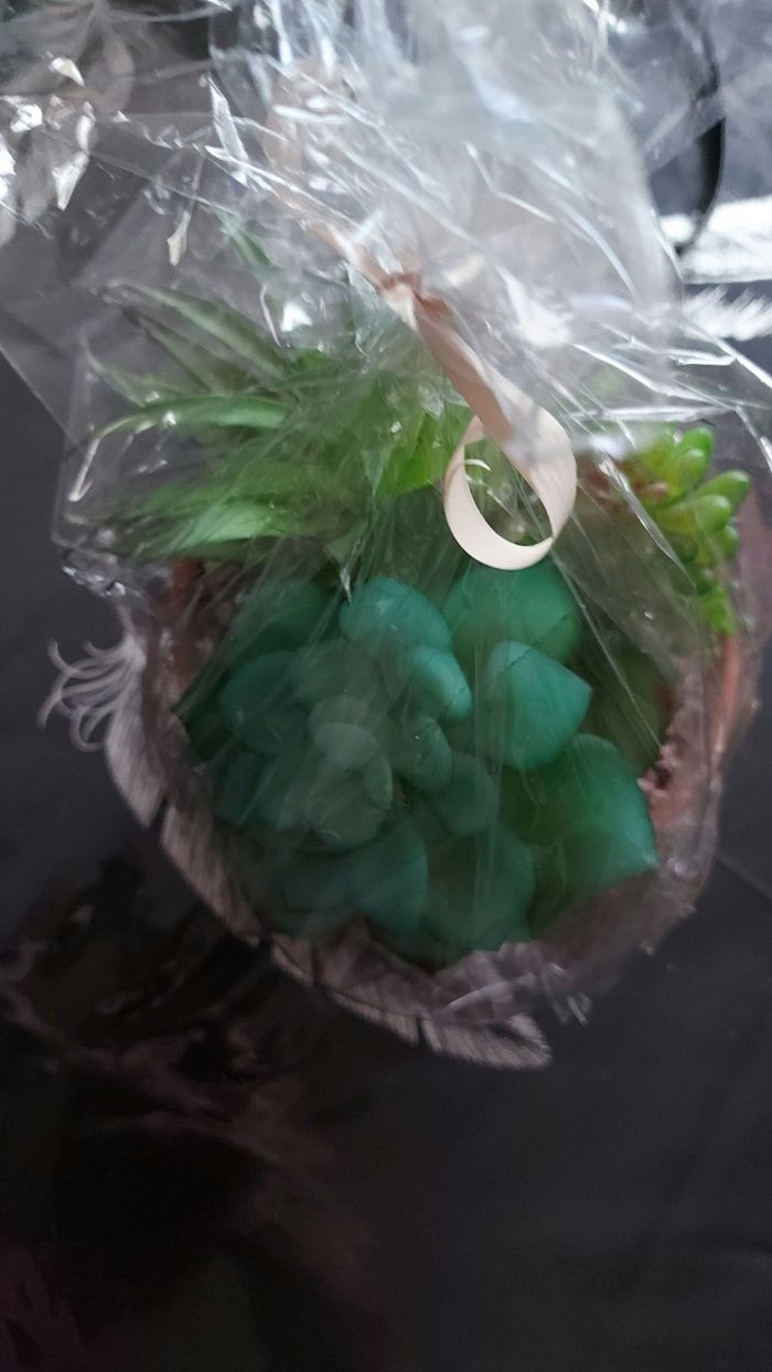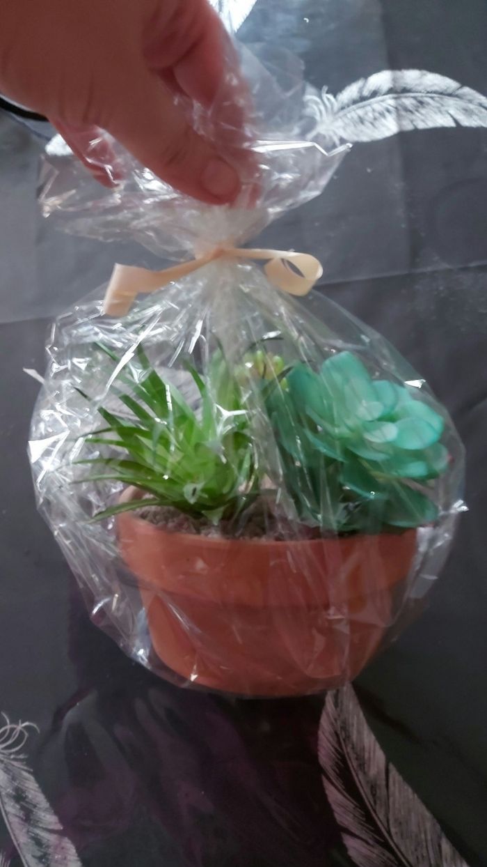 Vase avec montage de fleurs artificielles, ht 17 x diamètre 13 cm