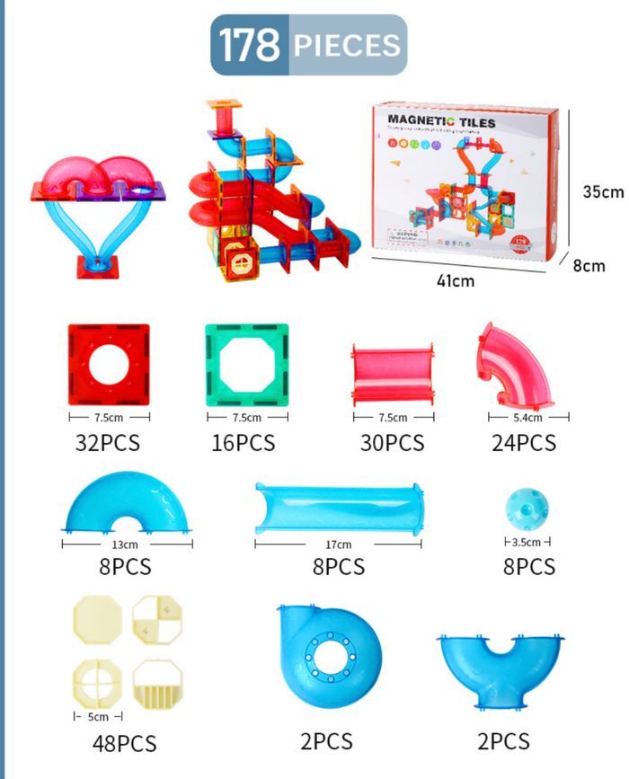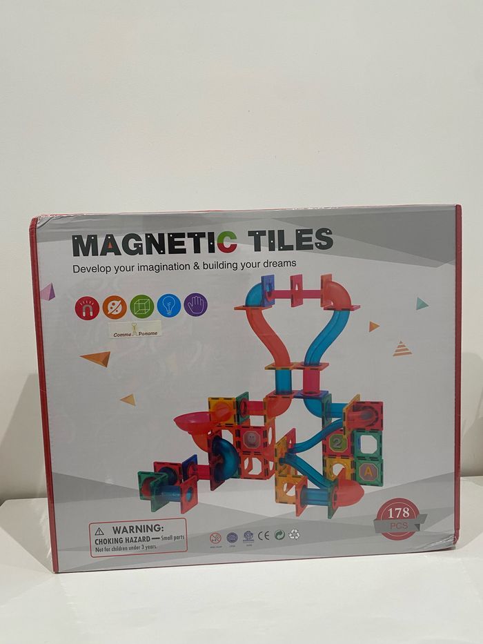 Les Blocs de construction magnétiques sont excellents pour le développement des enfants. Les enfants peuvent créer diverses formes planes en 2D ou des structures géométriques en 3D. Aide les enfants à construire et à améliorer leur reconnaissance des couleurs et des formes, à développer leur pensée créative, leur utilisation de l'imagination et à améliorer leurs capacités pratiques et de conception. L'ensemble de construction magnétiques pour enfants est un moyen efficace d'interaction entre les parents et les enfants, et c'est un excellent jouet/jeu pour renforcer la relation parent-enfant. Il convient aux rassemblements individuels ou multi-personnels, à l'exploration de l'inconnu ensemble et à la sensation d'accomplissement de la création ensemble. Animaux, voitures, fusées, avions, châteaux, toboggans... Une création infinie est ouverte par les enfants. La combinaison de blocs de construction magnétiques et de tuyaux transparents offre plus de possibilités et peut satisfaire la créativité infinie des enfants. C’est le cadeau parfait que les enfants adoreront pendant des années !Ressentez la confiance de votre enfant grandir lorsqu'il construit avec succès tout ce à quoi il peut penser. La créativité est sans fin, il n'y a pas de modèle fixe, seulement des possibilités infinies. Convient pour tous les âges à partir de 3 ans inclu. Seul ou en groupe, c’est une excellente manière de passer de précieux moments en famille et avec ceux que vous aimez ! Jouets neufs et sous blisters ! Idées cadeaux 🎁 Nombre de pièces : 178 pcs N’hésitez pas à me demander les détails et dimensions du contenu si besoin. #blocsdeconstruction #magnetiques #jeuxeducatifs #anniversaire #vacances #magnetiques #blocsdecouleurs #blocsmagnetiques #construction #jouets #jeux #enfants #cadeaux #jeuxeducatifs #anniversaire #motricite #scolaire #eveil #noel #christmas #christmasgift #school #christmasgiftideas #christmaspresent #carreauxmagnetiques #magformers