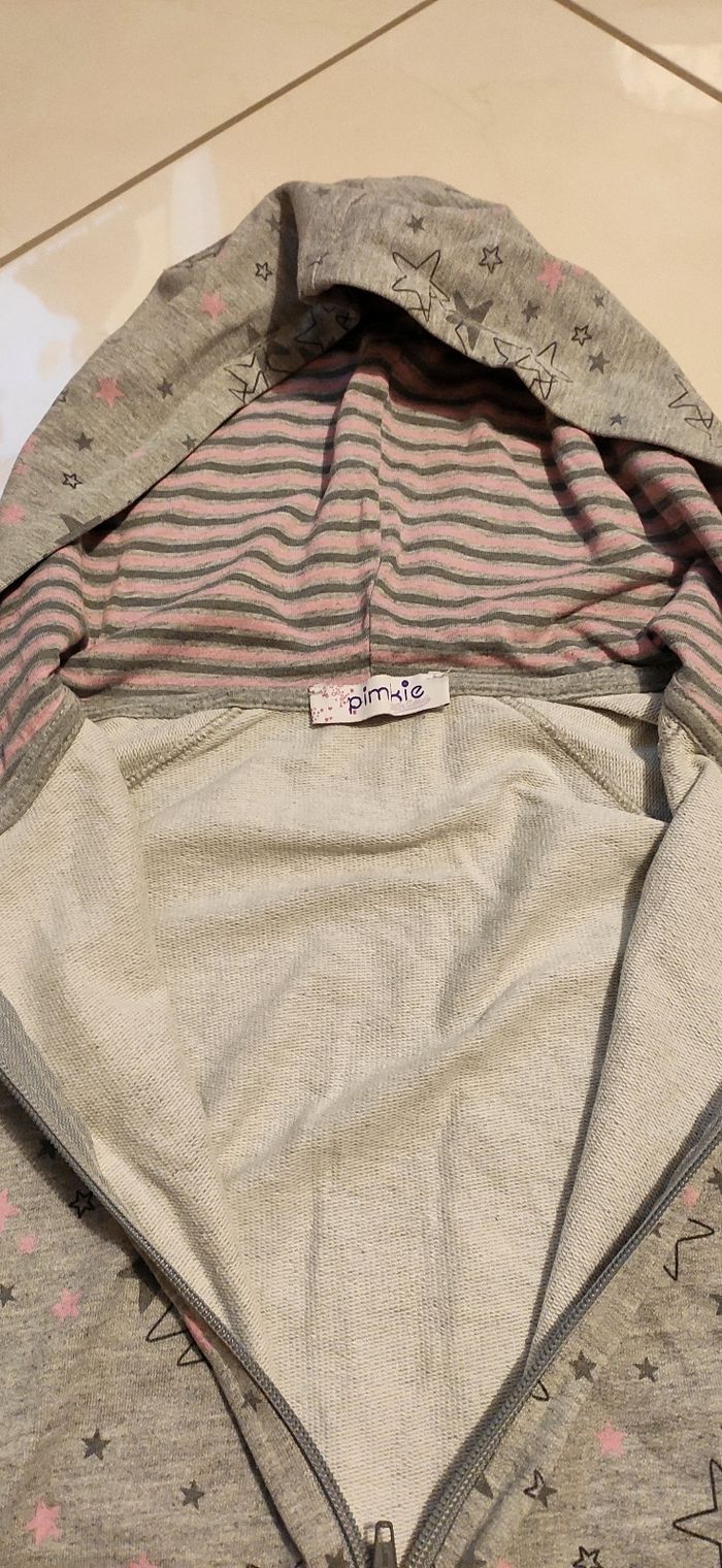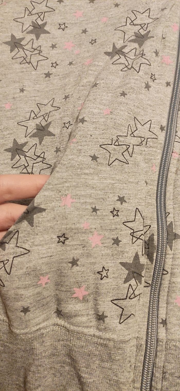 Sweats à capuche gris avec étoiles. Zippée.