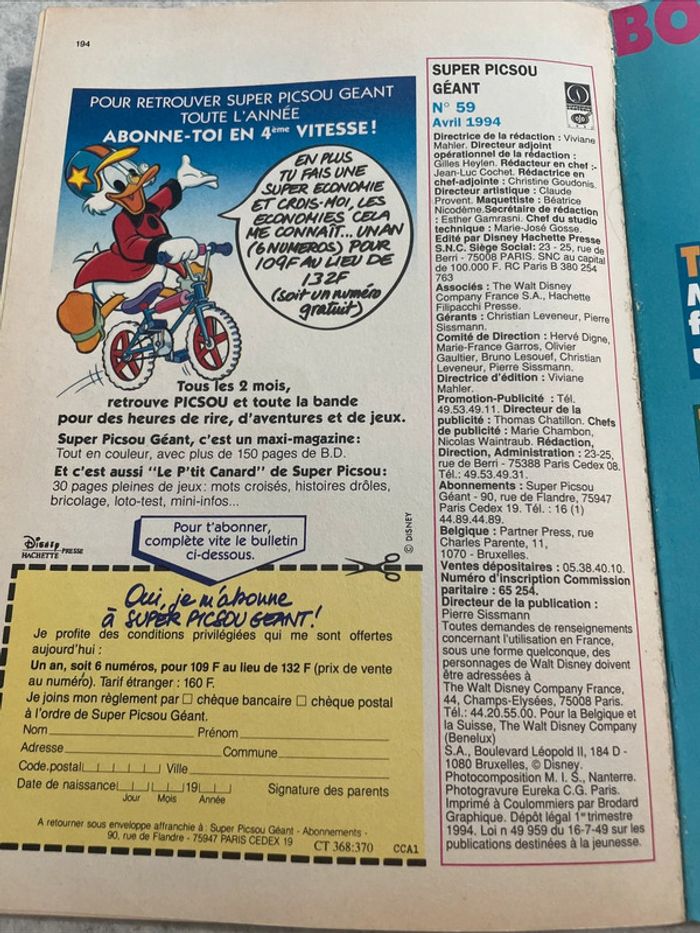 Super Picsou Géant Tome 59 - Avril 1994 - photo numéro 2