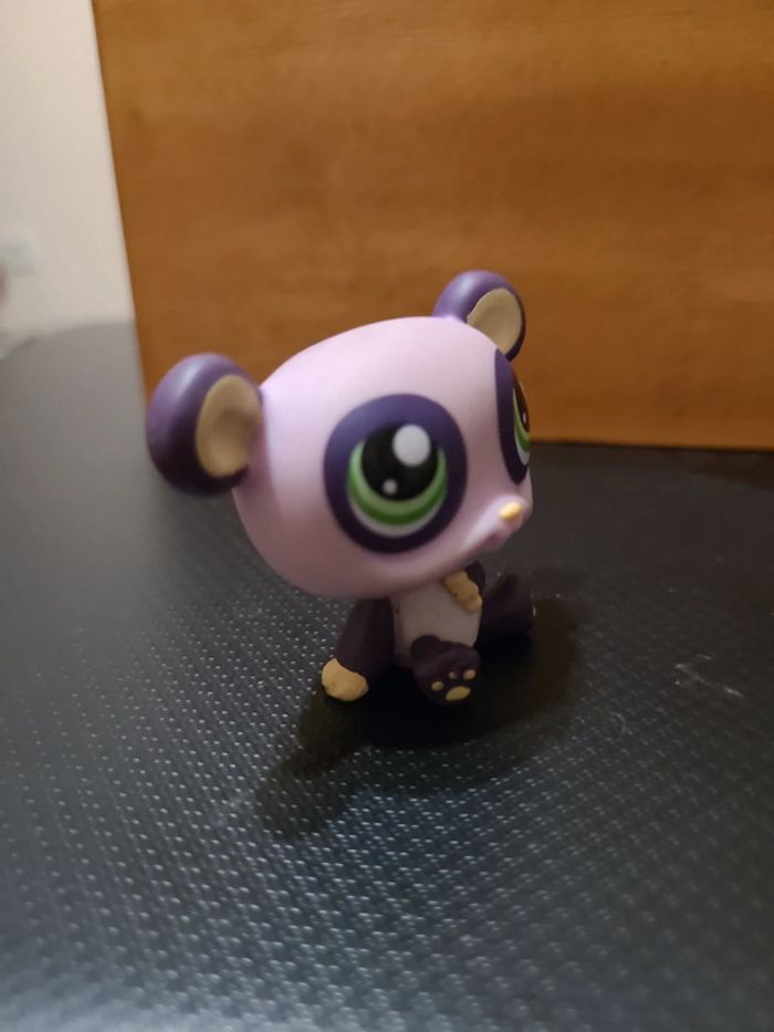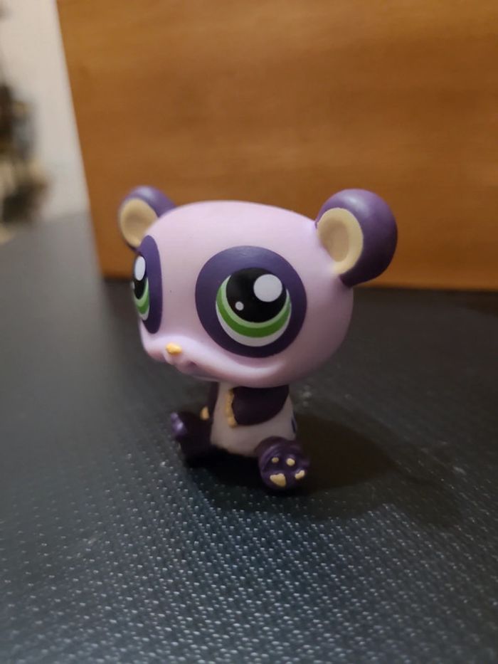 ⬇️mes autres annonces de petshop👉 #cg89petshop 😁 réductions activées des 2 articles ! un panda petshop dans les tons mauve et violet bon état, il est aimanté. #pandapetshop #lps #petshop #panda
