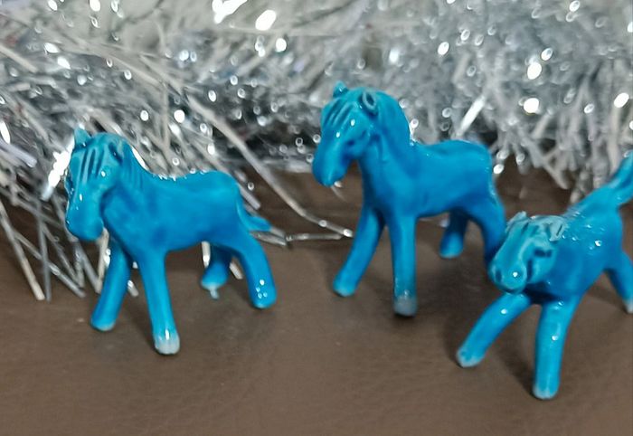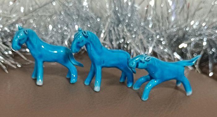 Très joli lot de 3 petits chevaux du bonheur. Porcelaine bleue. Vintage et ancien. Décoratif. Jouet vintage, à jouer ou collectionner Collection jouet figurine articulée peluche poupee ancienne maison non fumeur et sans animaux n'hésitez pas à faire des lots