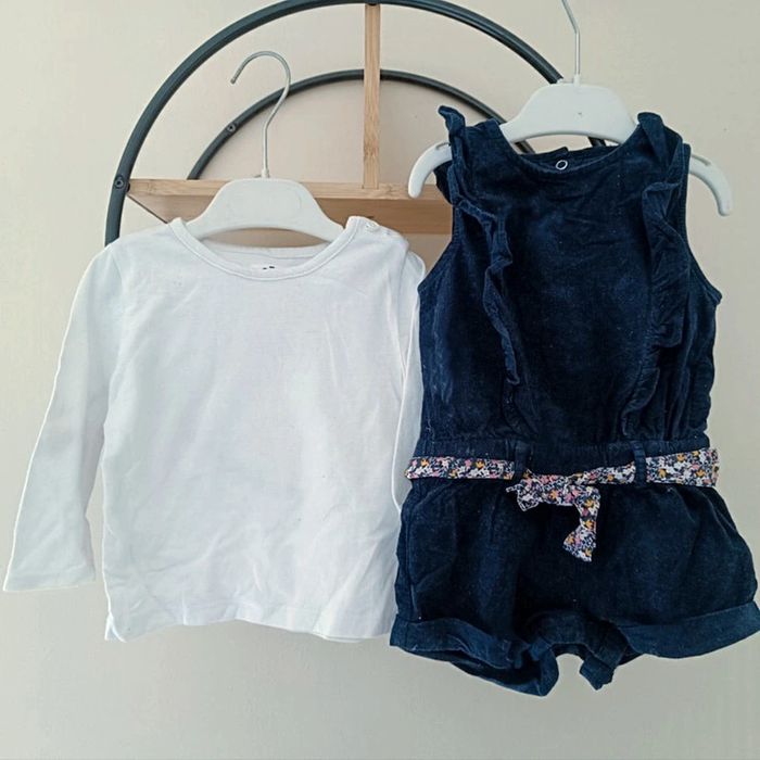 12 mois ensemble Gémo salopette short hiver avec ceinture et t-shirt