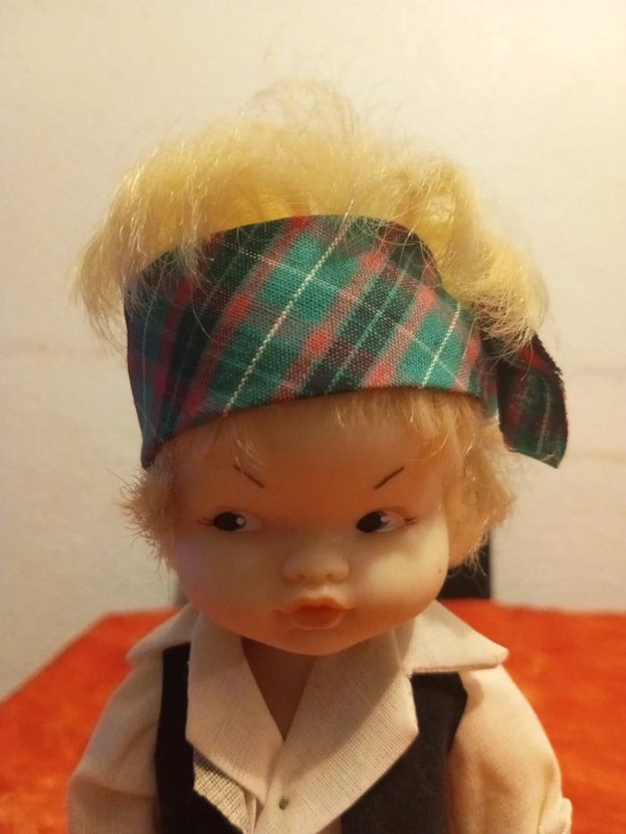 Poupée garçon blond vintage avec joli visage et tenue traditionnelle folklorique, je ne connais ni la marque , ni le pays de la tenue. J'ai à la vente, dans le dressing sa compagnon. En très bon état, vendu comme sur les différentes photos. Dans mon dressing, il y a d'autres poupées , des peluches, des Petshop, des Lego Duplo, des Playmobil, des Barbie et beaucoup de jeux et jouets vintage #Nourriture06_peluche_vintage