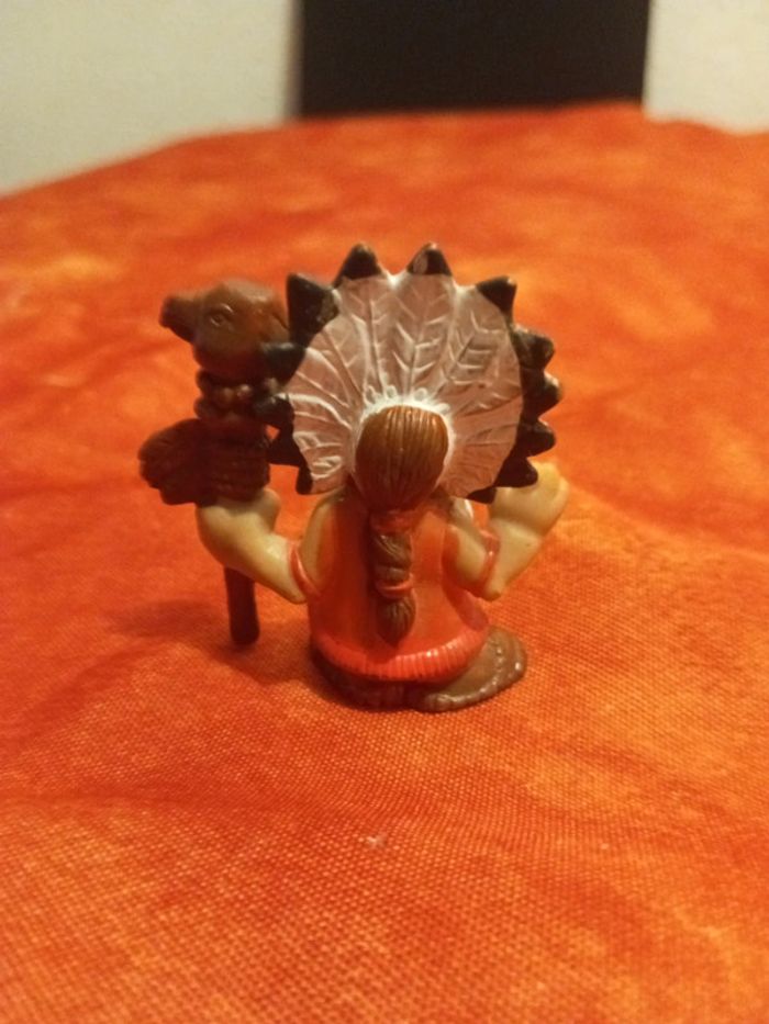 Figurine en plastique vintage 1992 d'un indien avec coiffe et totem En très bon état,vendu comme sur les différentes photos. Dans mon dressing, il y a d'autres figurines , des peluches, des Petshop, des Lego Duplo, des Playmobil, des Barbie et beaucoup de jeux et jouets vintage