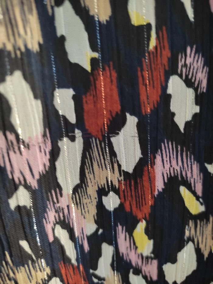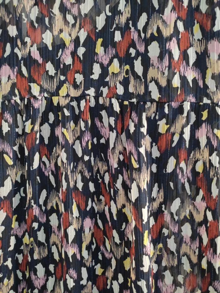 Jolie robe avec imprimé. Doublure. Quelques fils tirés (voir photos). Mais cela ne se voit que de près