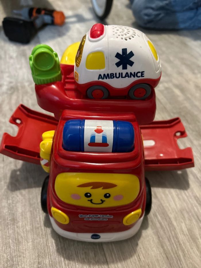 VTech - Tut Tut Bolides, Mon Super Camion de Pompiers avec Voiture Clémence SOS Ambulance Les piles seront à changer
