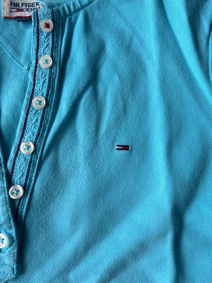 Polo bleu ciel Hilfiger denim Taille M Quelques fils dépassent derrière (pas troué ) #hilfigerdenim #teeshirtfemme #taillem
