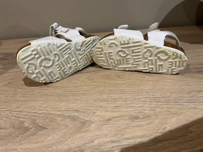 Sandalette blanche avec fermeture scratch et boucle Saleté de la semelle et usure du au port régulier