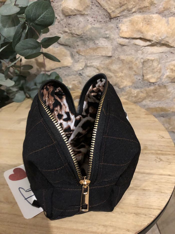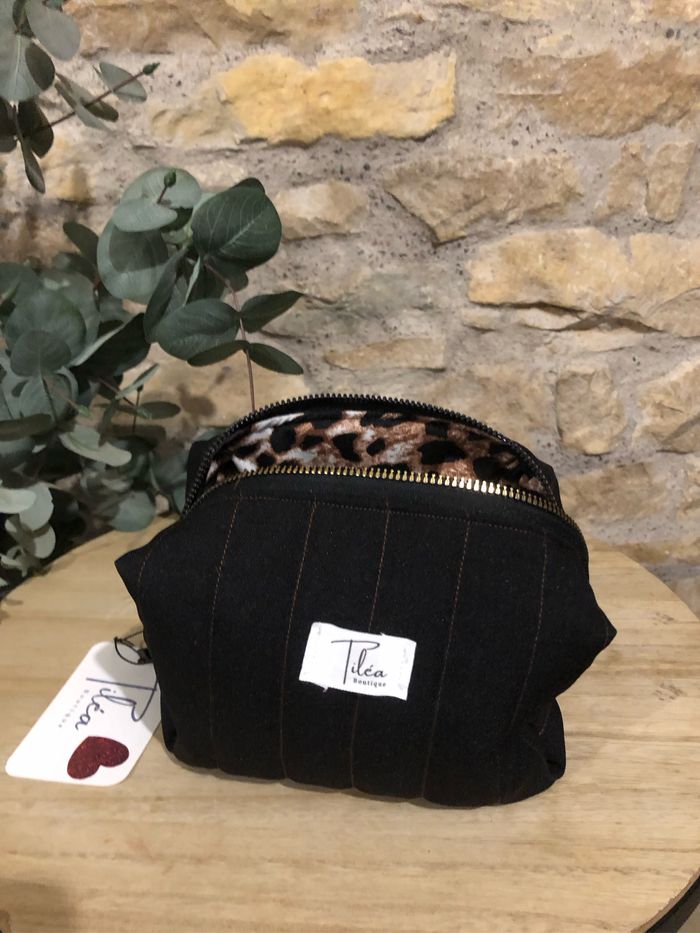 Trousse make up maquillage ou de voyage Tissu matelassé intérieur panthère, Jamais utilisée