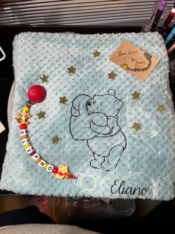 Coffret comprenant couverture et attache tétine assortie Disponible avec tout les autres thème Création rapide et soigner Plusieurs motifs sont disponible pour l’attache tétine et la couverture Adaptateur mam à 1€ supplémentaire Me contacter pour plus d’info