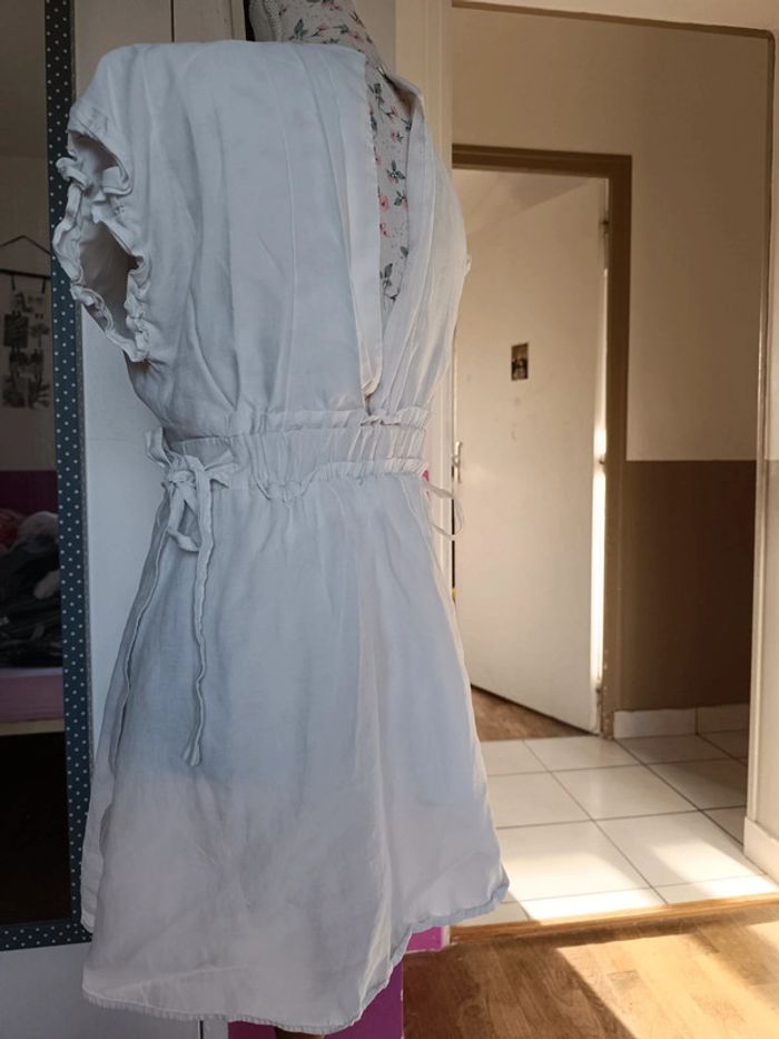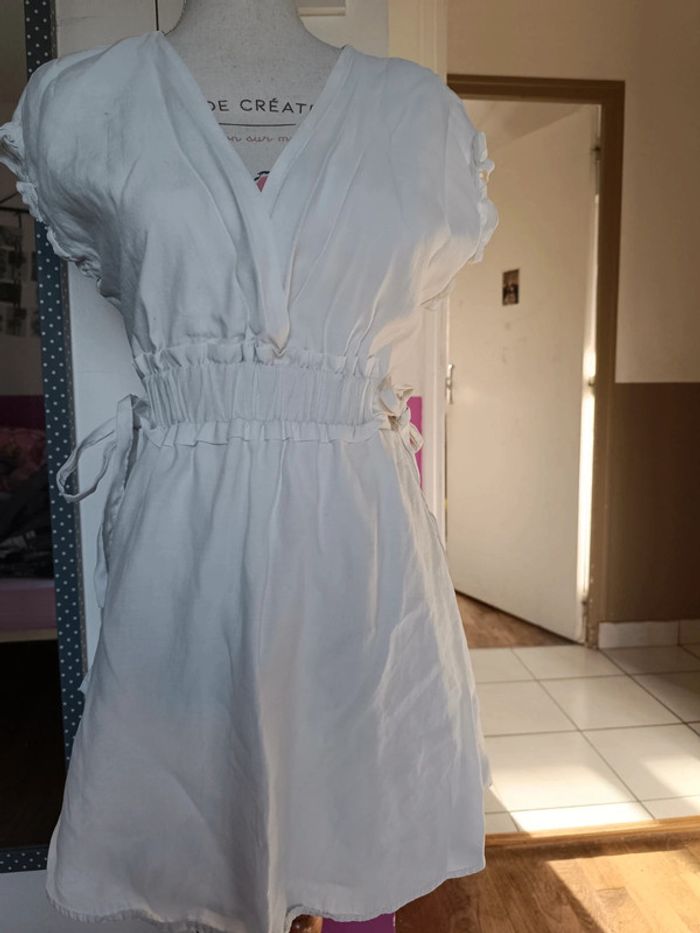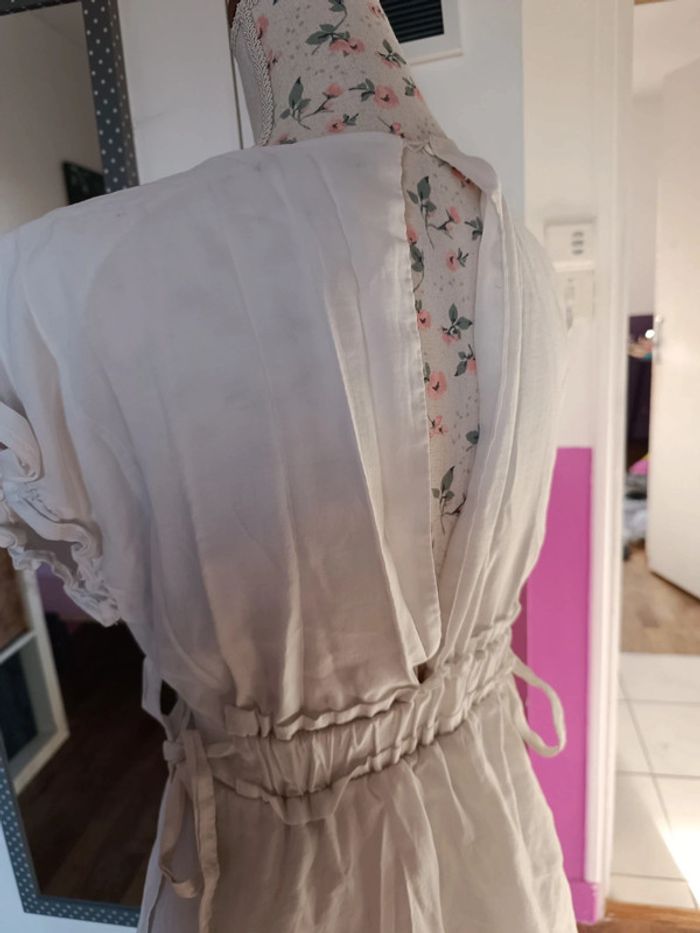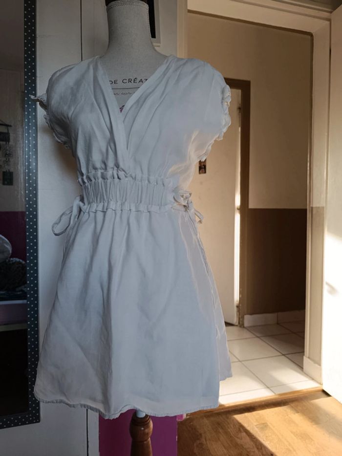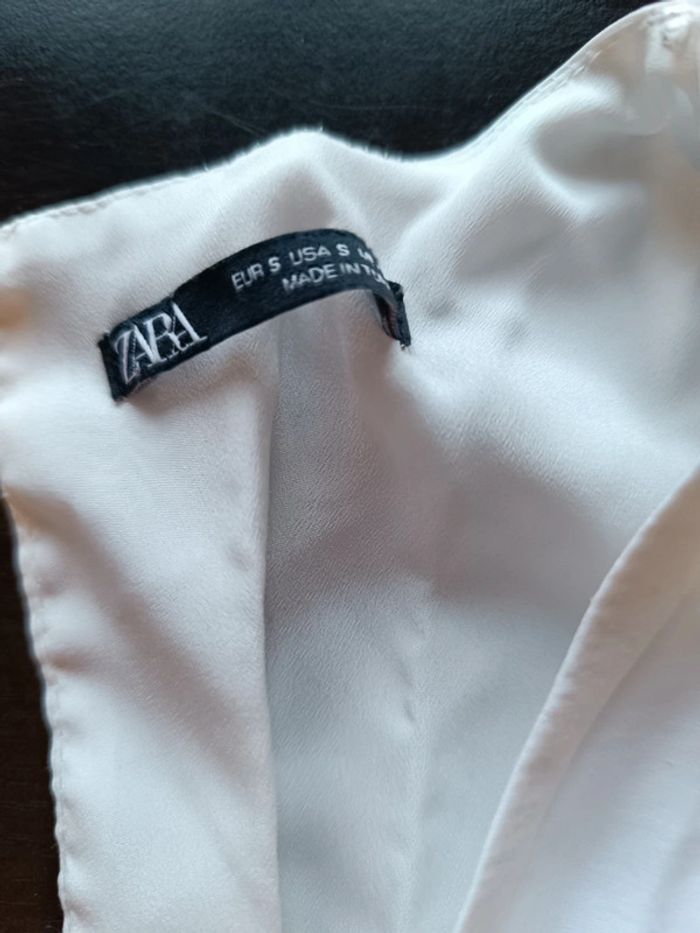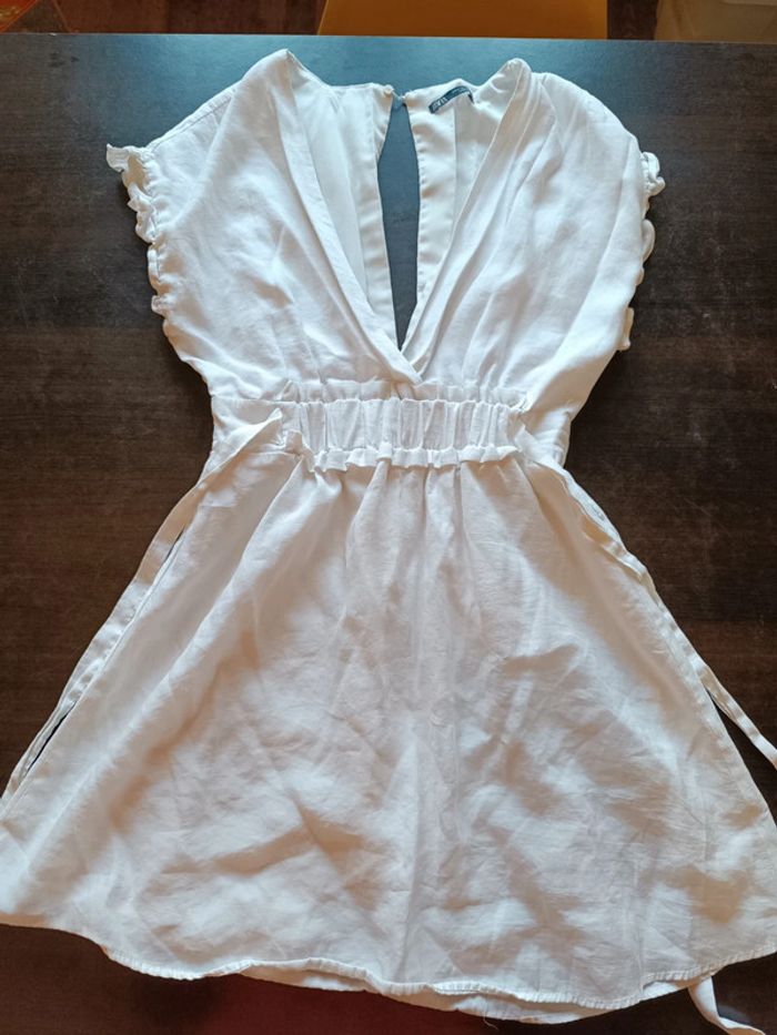 Robe ZARA Blanche Décolleté devant & dans le dos Fermé par 1 bouton dans le dos Doublée 86% Lyocell & 14% Polyester TAILLE S TRES BON ETAT Allez voir mes autres ventes!