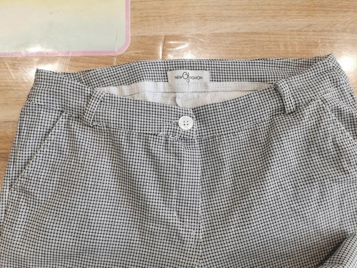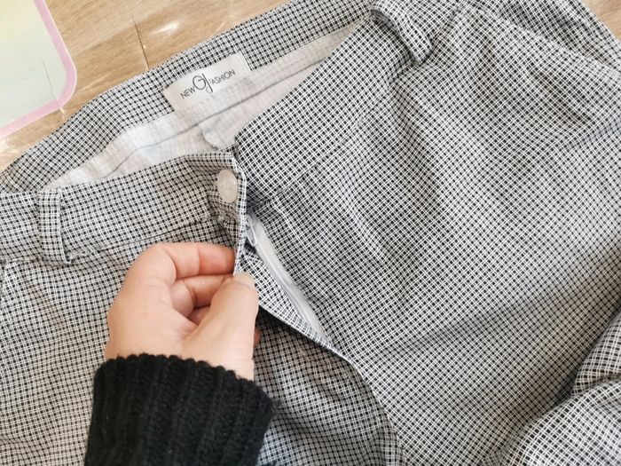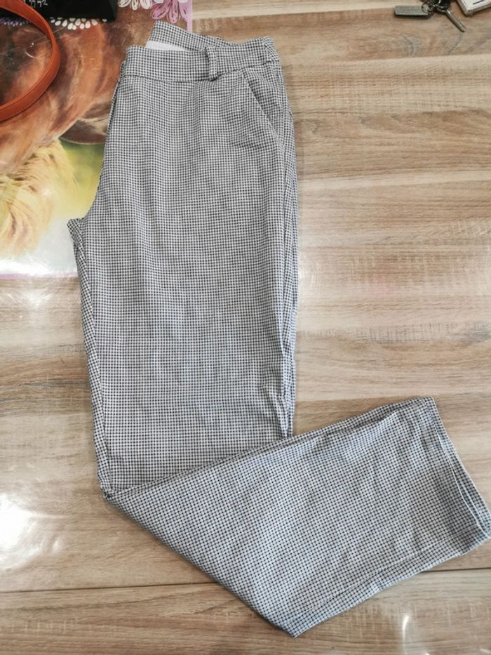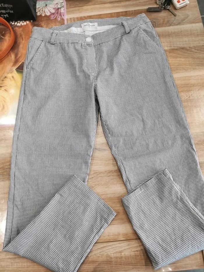 Pantalon bien Strerch taille 42 À motif petits carreaux Plsuziurs poches, ferme par boutons et fermeture éclair Passage pour une ceinture Dans l'ensemble en très bon état