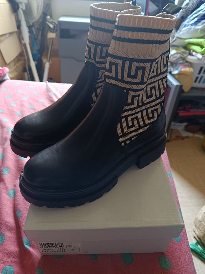 Bottine chaussette sur le haut couleur noir et crème petit compensé neuve taille 36