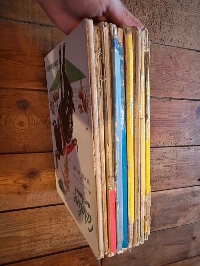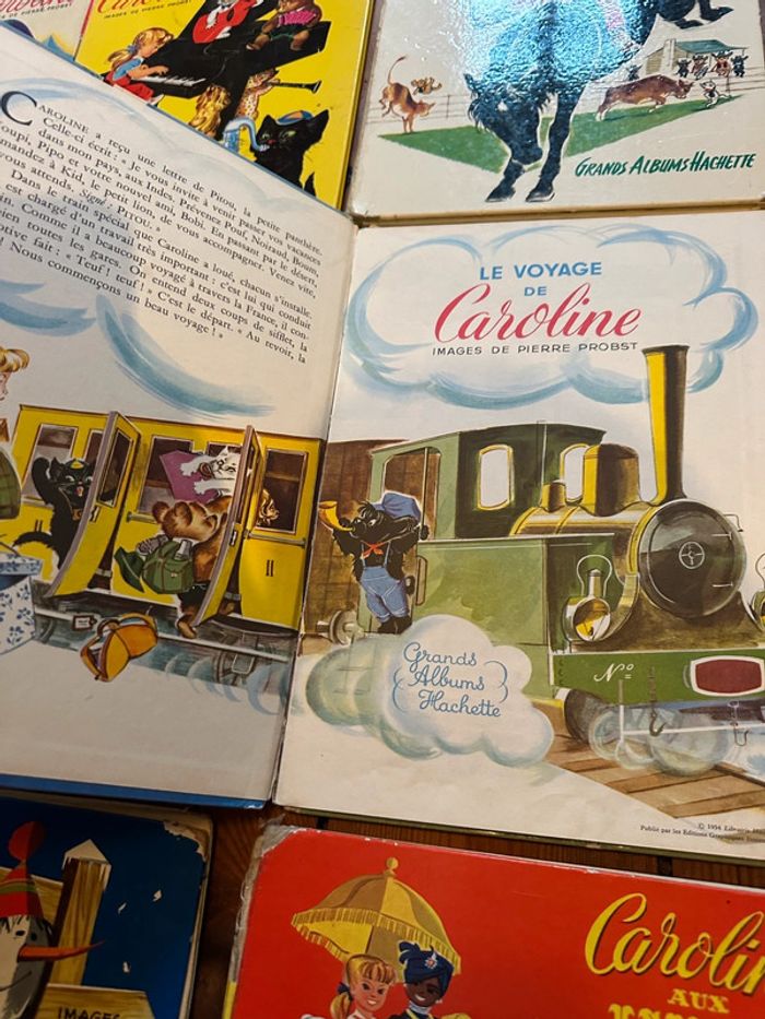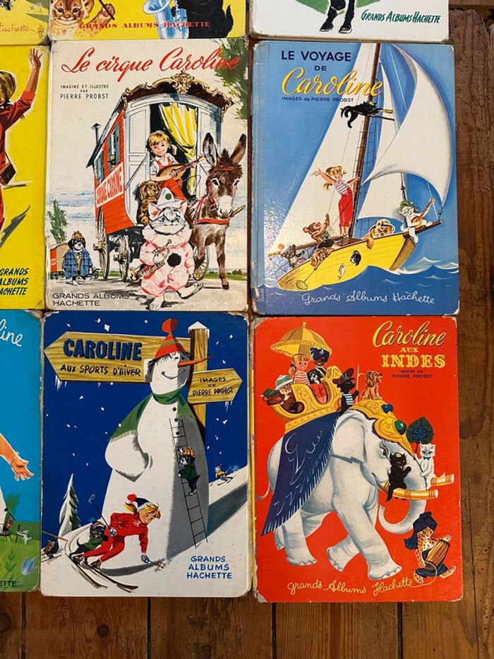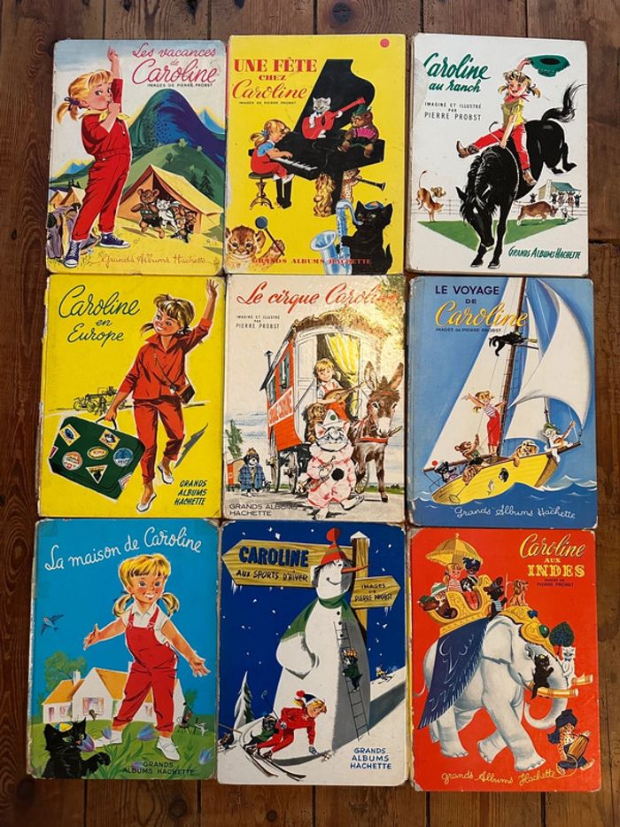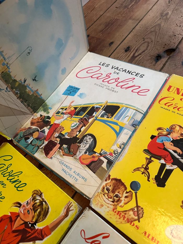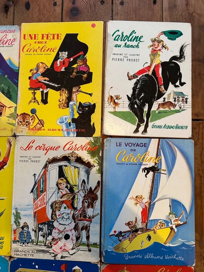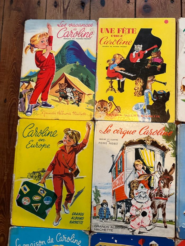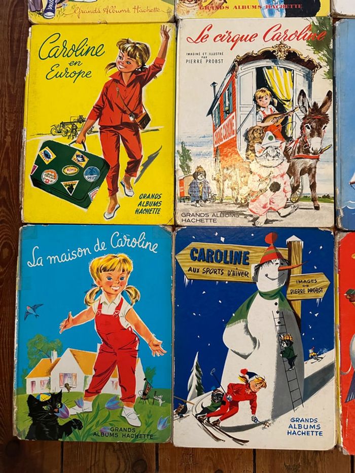 Ils sont tous COMPLETS en état satisfaisant (livres bien utilisés, qui ont plus de 60 ans 🎉🎆☺️). Envoi rapide et très soigné. Lot non négociable. Il comprend les titres suivants : Le voyage de Caroline Les vacances de Caroline Une fête chez Caroline Caroline en Europe Le cirque Caroline Caroline aux Indes Caroline au ranch La maison de Caroline Caroline aux sports d’hiver