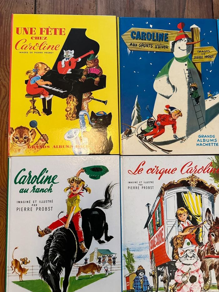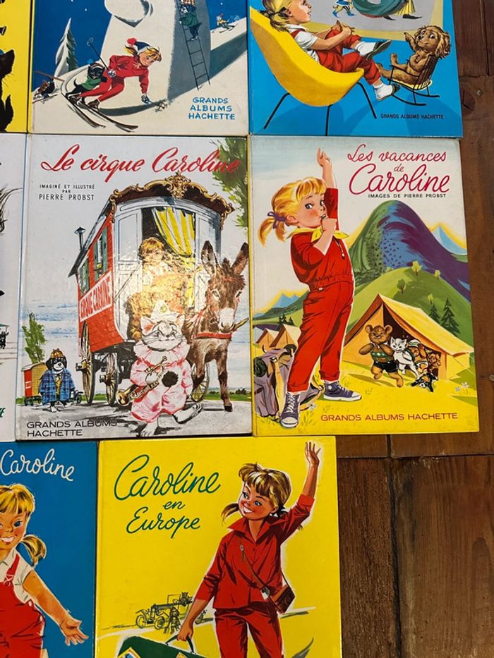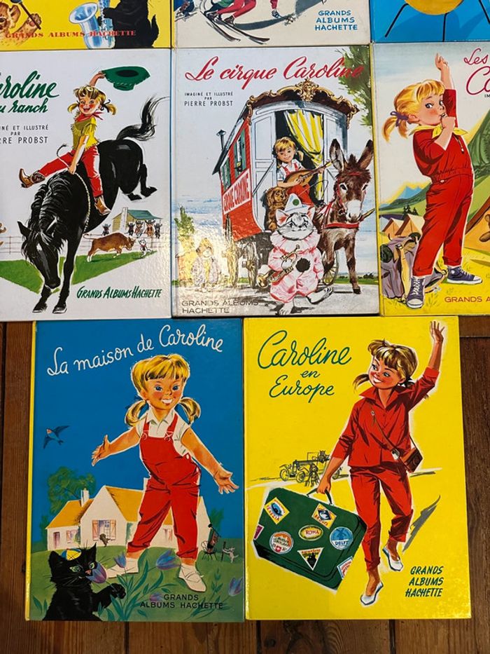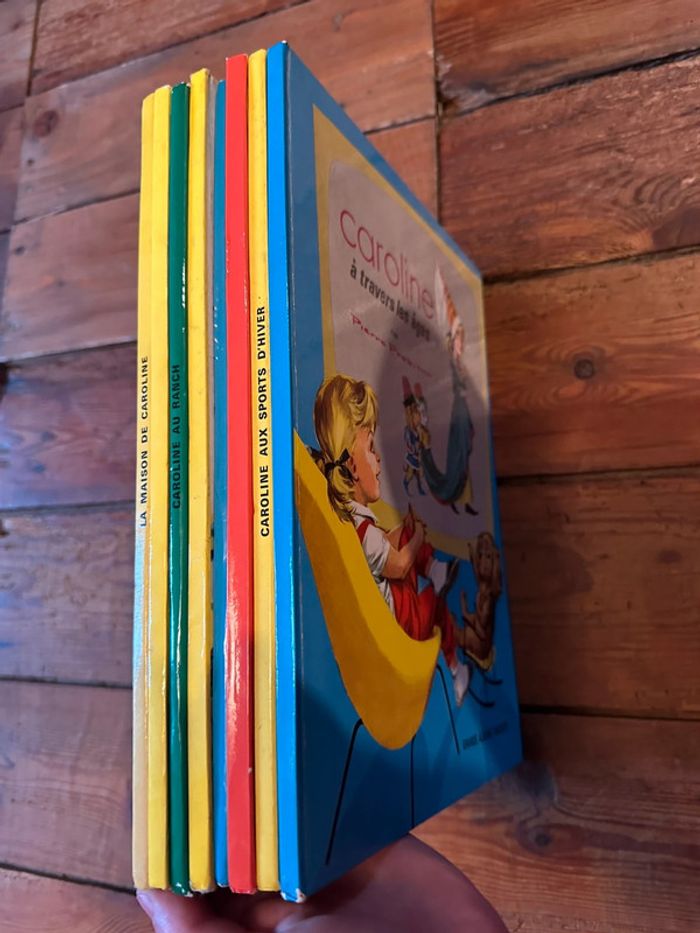 Ils sont COMPLETS et en TRÈS BON ÉTAT, ce qui est très rare pour ces livres de plus de 60 ans, anciens vintage. Envoi rapide et soigné, non négociable. Le lot comprend : Une fête chez Caroline Caroline aux sports d’hiver Caroline à travers les âges Caroline au Ranch Le cirque Caroline Les vacances de Caroline La maison de Caroline Caroline en Europe