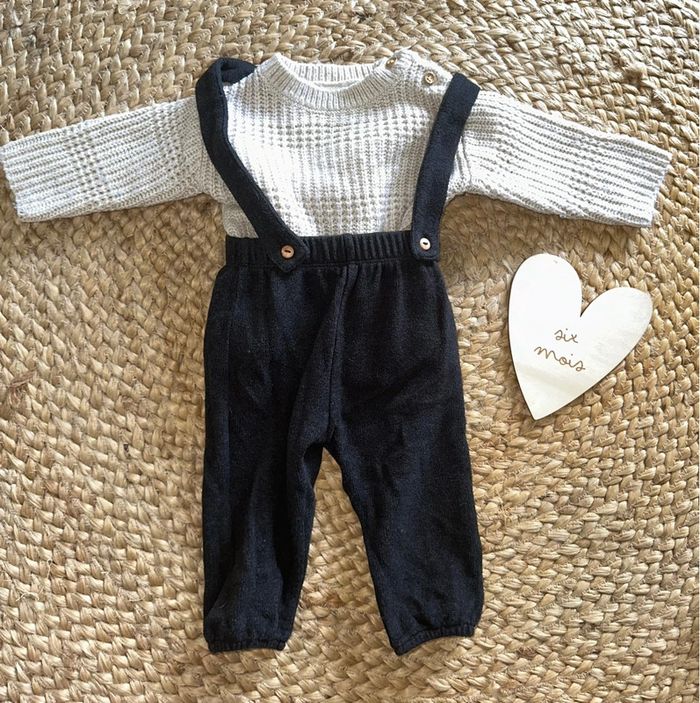 Pantalon à bretelle tout doux noir Pull maille 6 mois Réduction active ✅