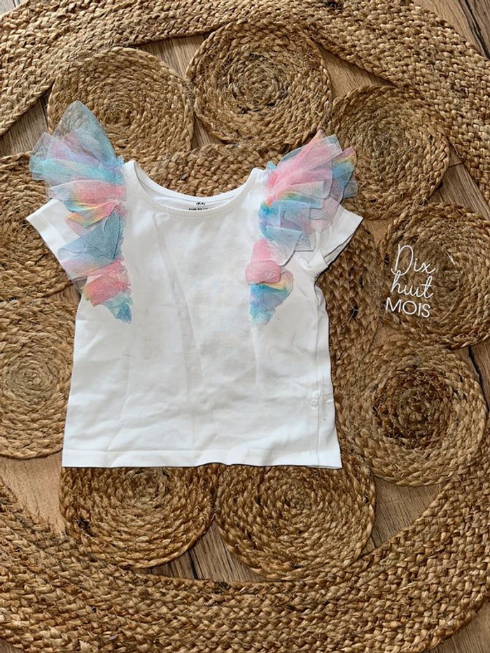 T shirt blanc avec volant multicolore