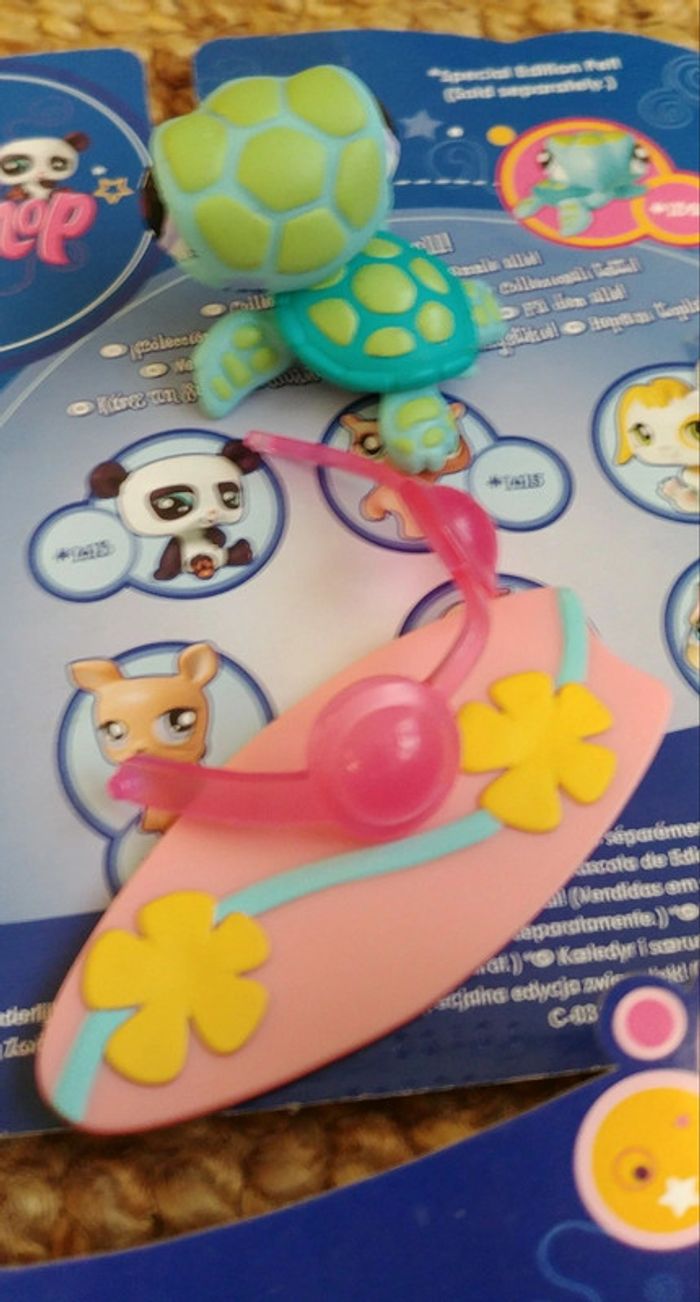 Envoi uniquement avec Mondial Relay ou Collissimo, merci! Mes tout petits amis / my littlest Petshop / LPS / mijn Kleine dierenvriendjes Hasbro 2009. Littlest Pet Shop tortue #969 accompagnée de sa paire de lunettes et de sa planche de surf. Set complet. N'hésitez pas à regarder dans mon dressing car je vais mettre en vente progressivement toute ma collection de MTPA G1 et G2. Réductions sur les lots activées!