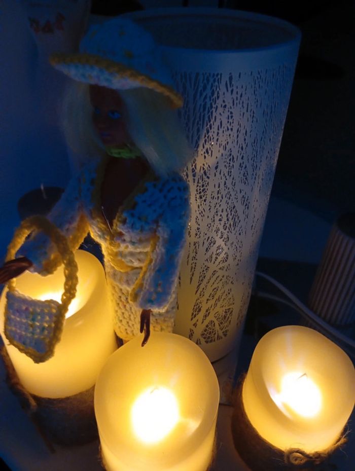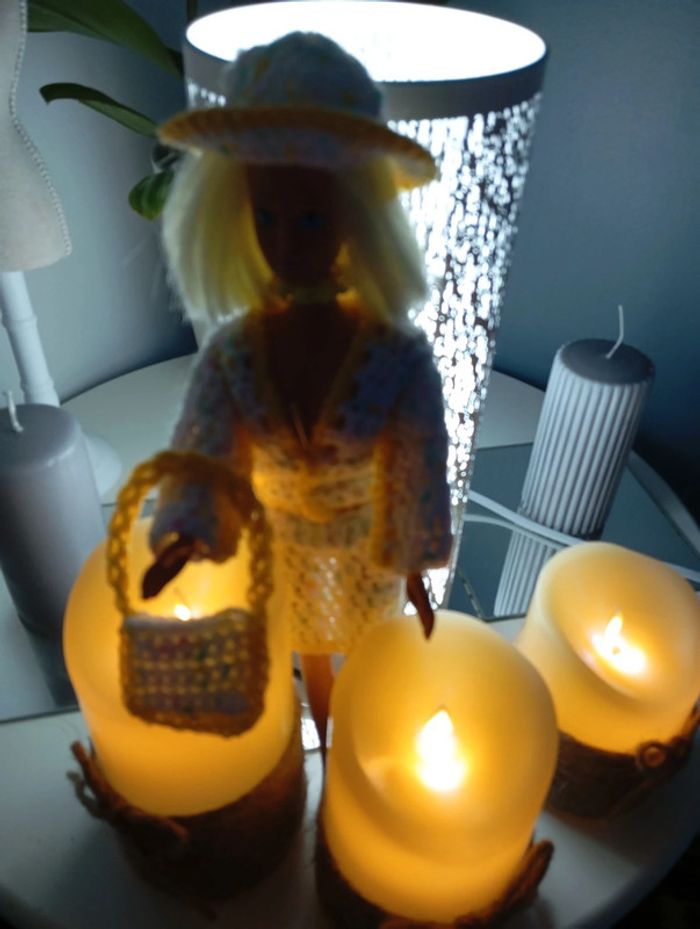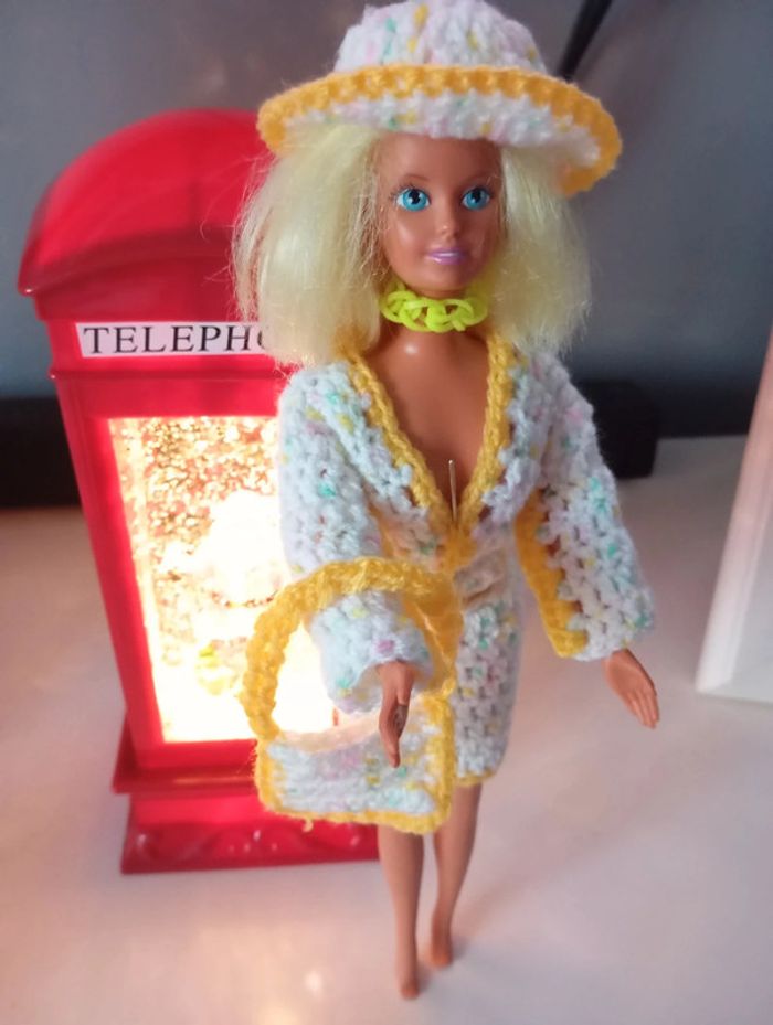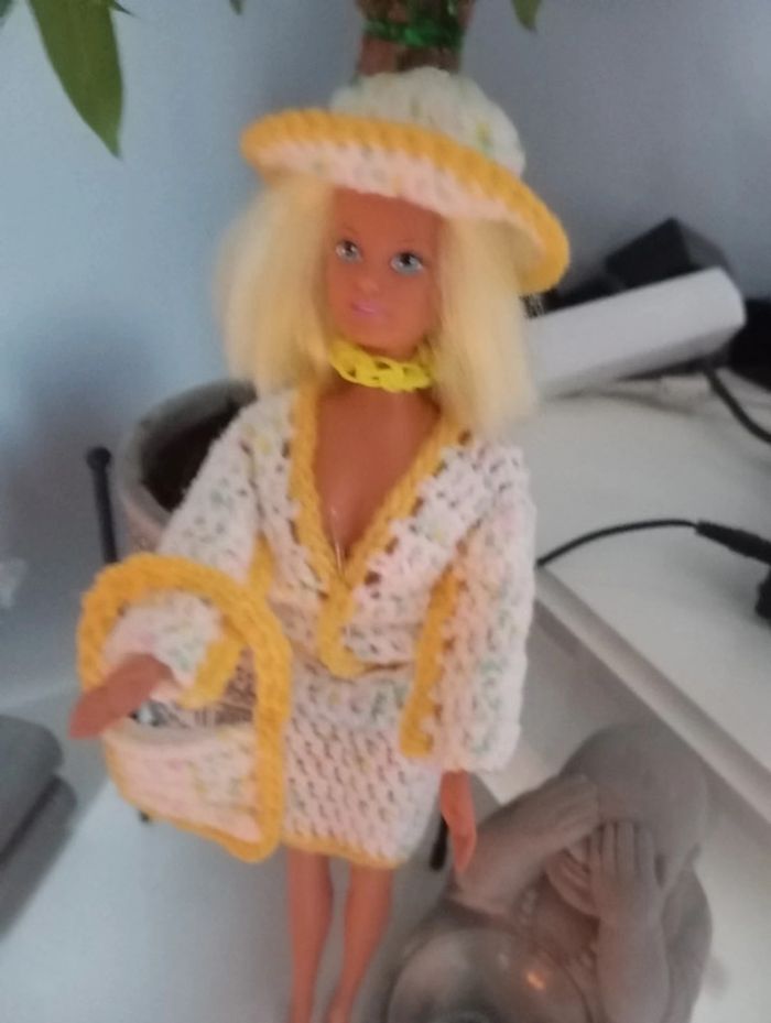 Barbie habillée : veste, jupe, chapeau,sac à main, collier.fait main par moi cette barbie cheveux jaune pour 1€ de plus.