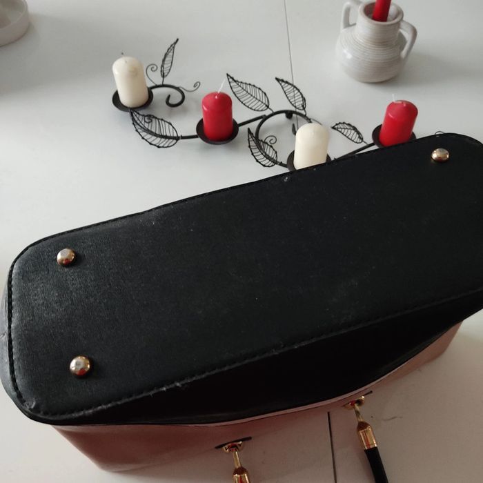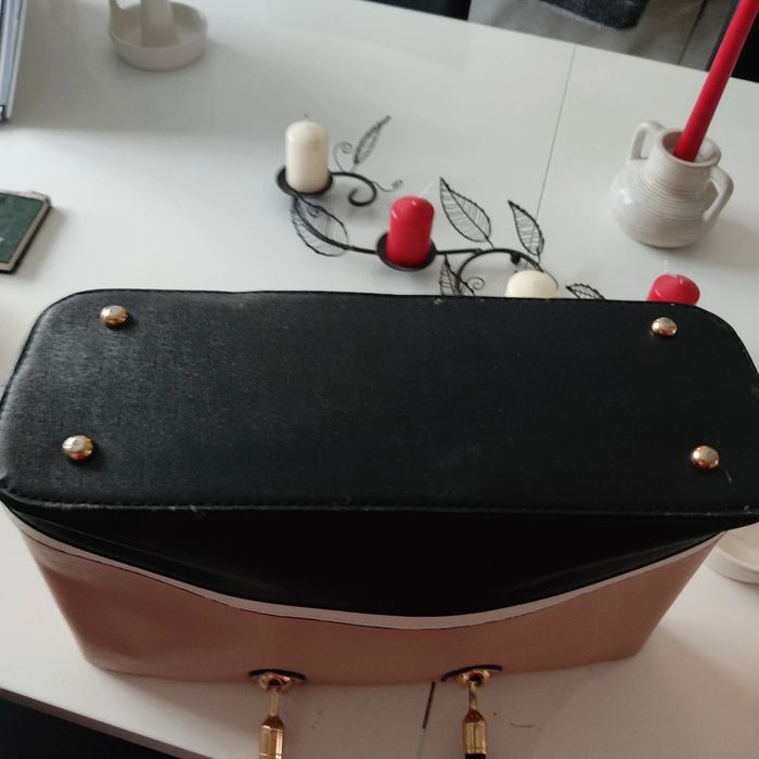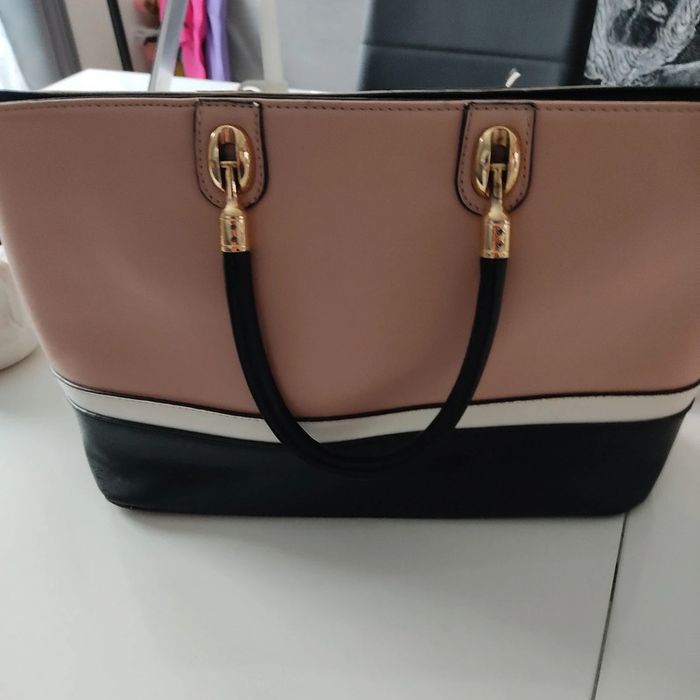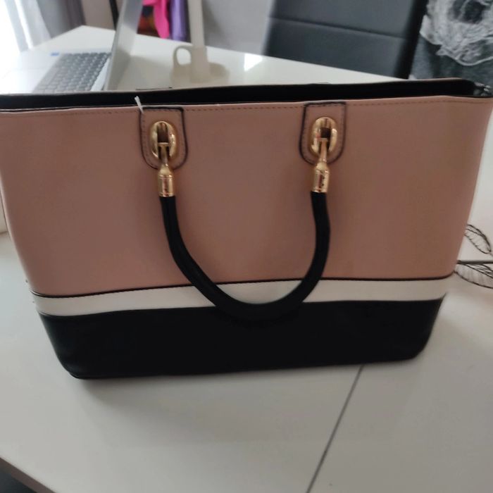 Sac à main rose et noir.hauteur 23 cm largeur 38 cm.fermeture intérieure prise en photo ouverte et fermer.deux petites pochettes à l'intérieur.