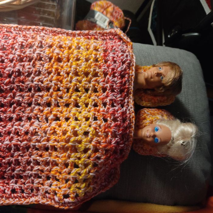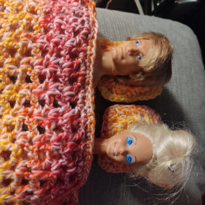 Couverture et 2 coussins pour Barbie.fait main par moi.