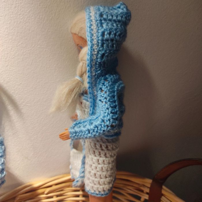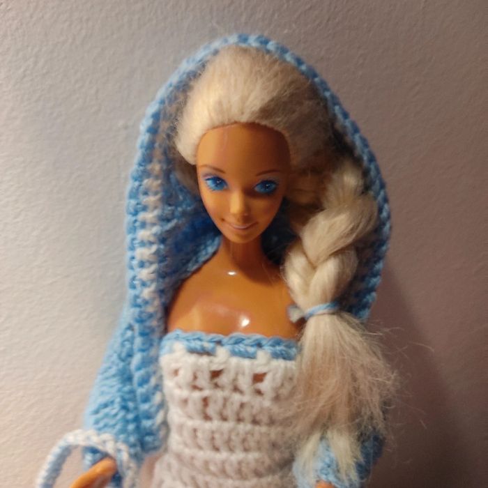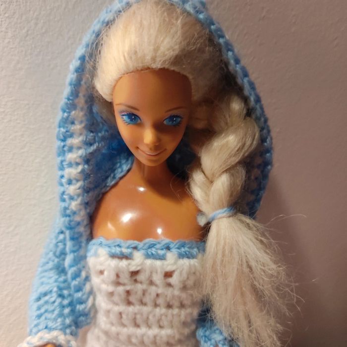 Barbie habillé :robe,veste à capuche, sac à main. Fait main par moi cette Barbie n'est pas à vendre.