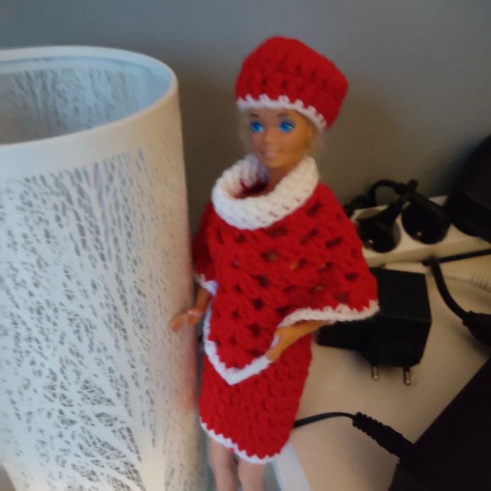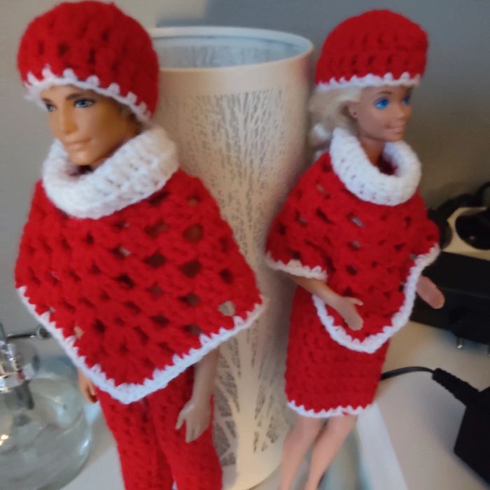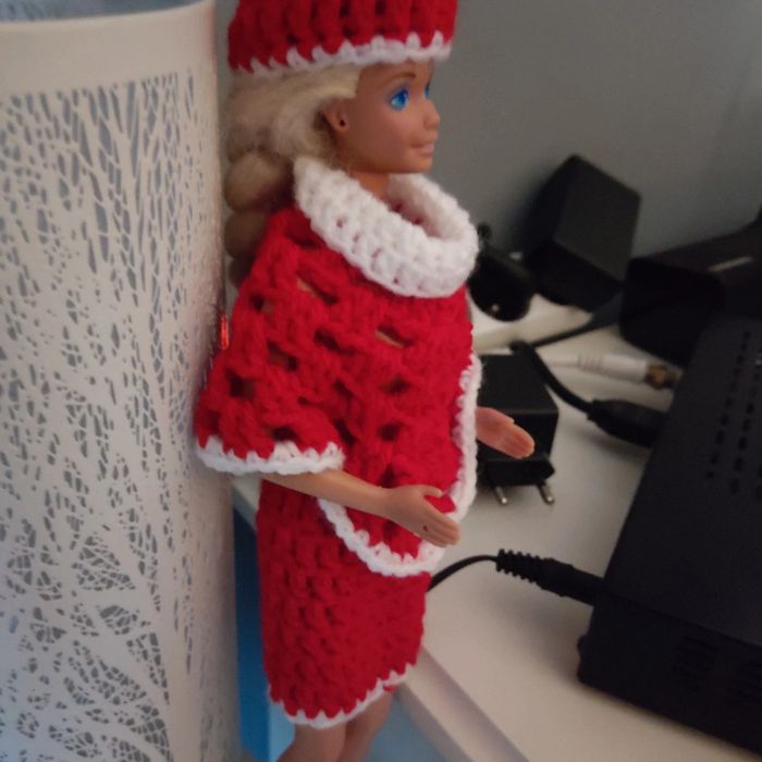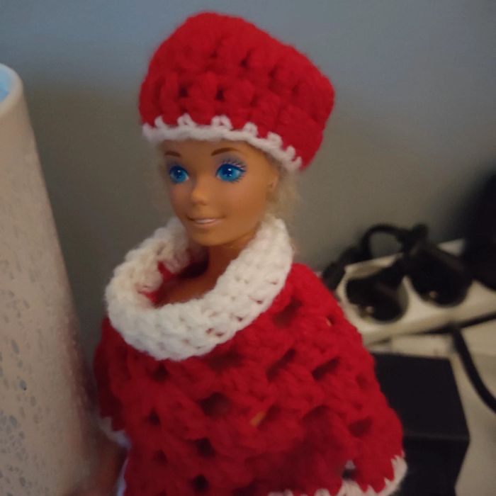 Barbie habillé : poncho, jupe, chapeau. Fait main par moi cette Barbie n'est pas à vendre.