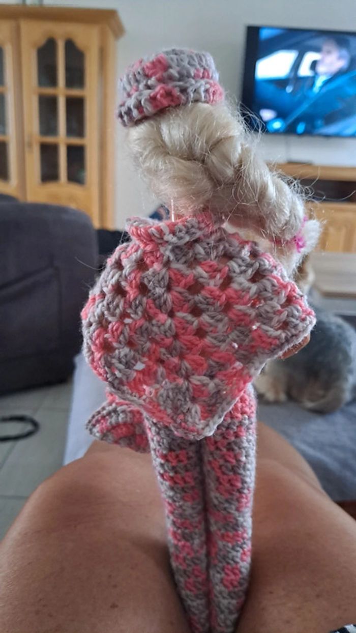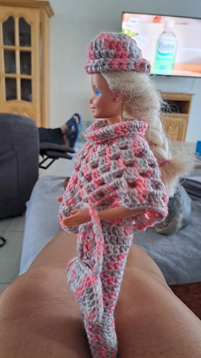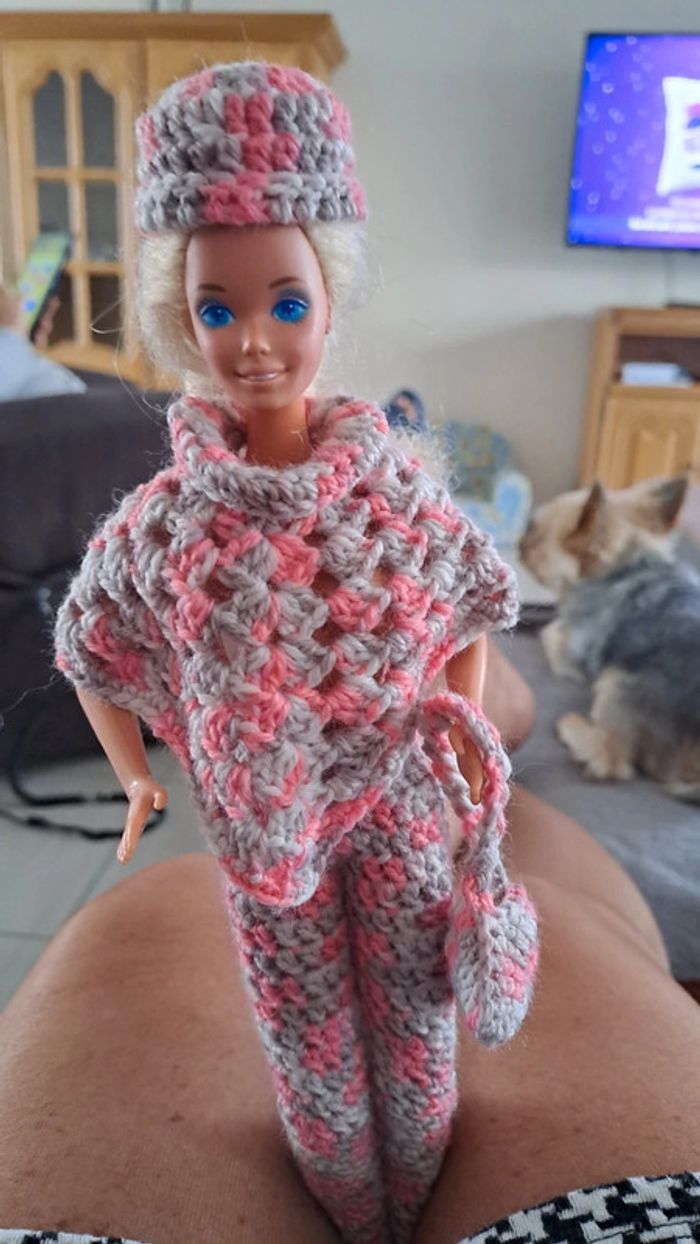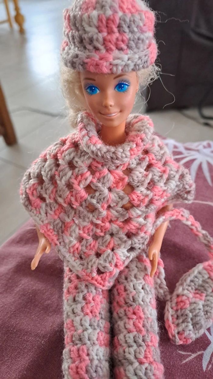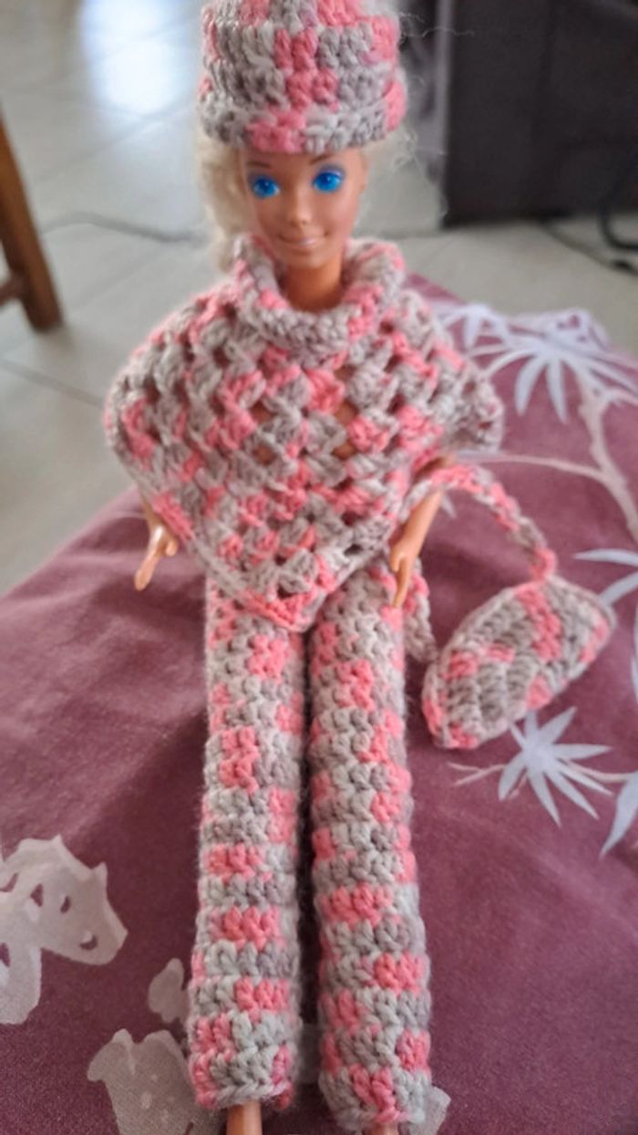 Barbie habillé :poncho, pantalon, chapeau, sac à main. Fait main par moi cette Barbie n'est pas à vendre.