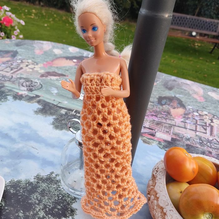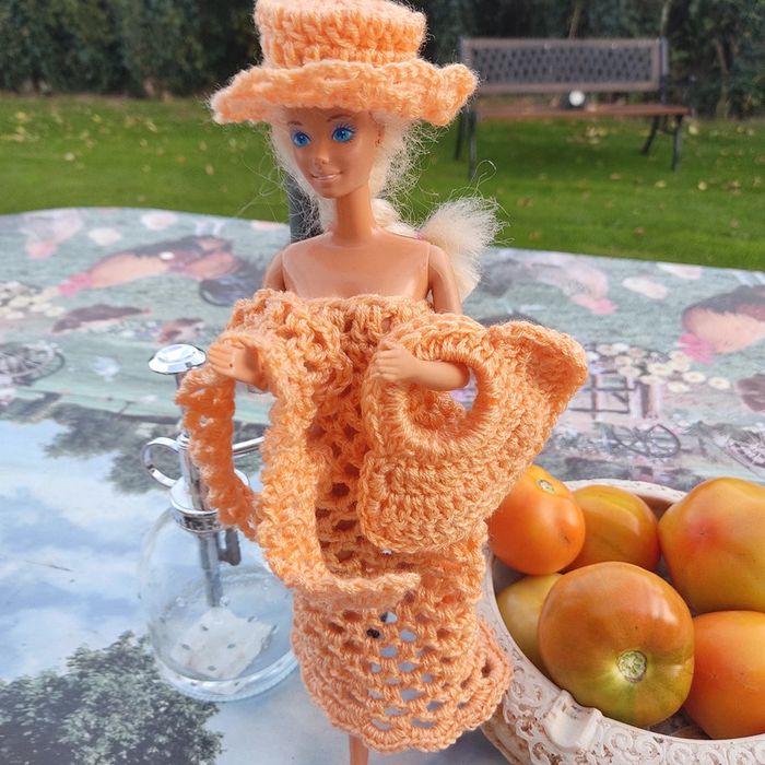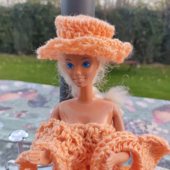 Barbie habillé : robe longue, châle, chapeau, sac à main. Fait main par moi cette Barbie n'est pas à vendre.