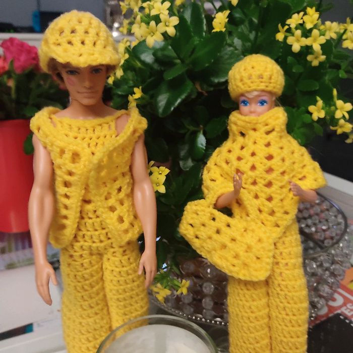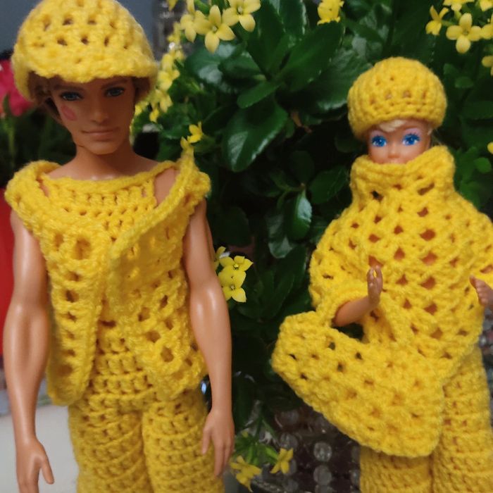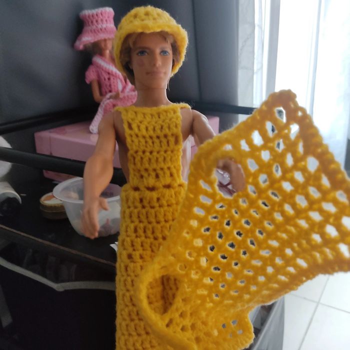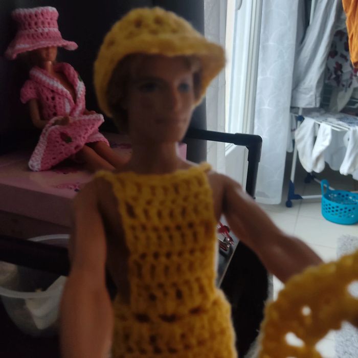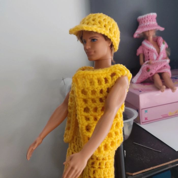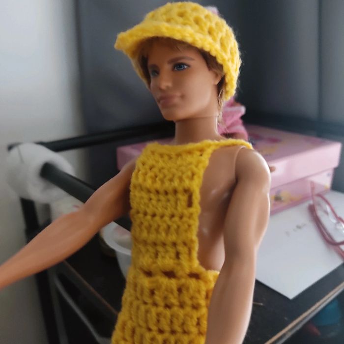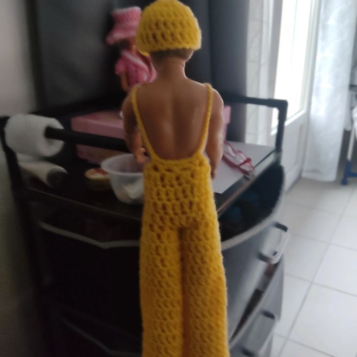 Ken habillé : salopette, boléro, casquette. Fait main par moi ce KEN n'est pas à vendre.
