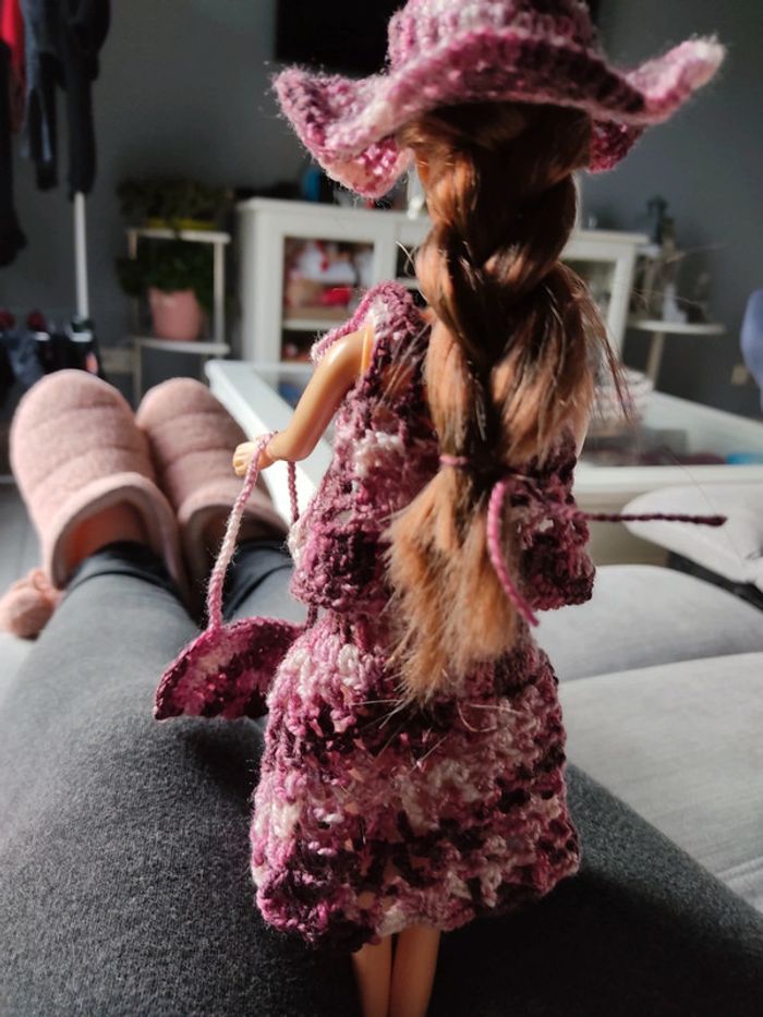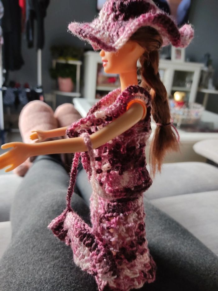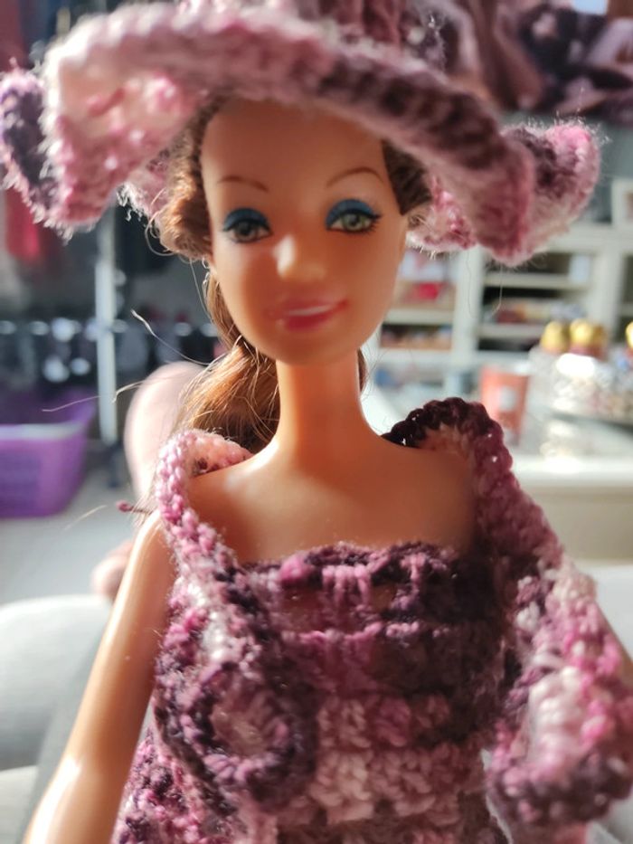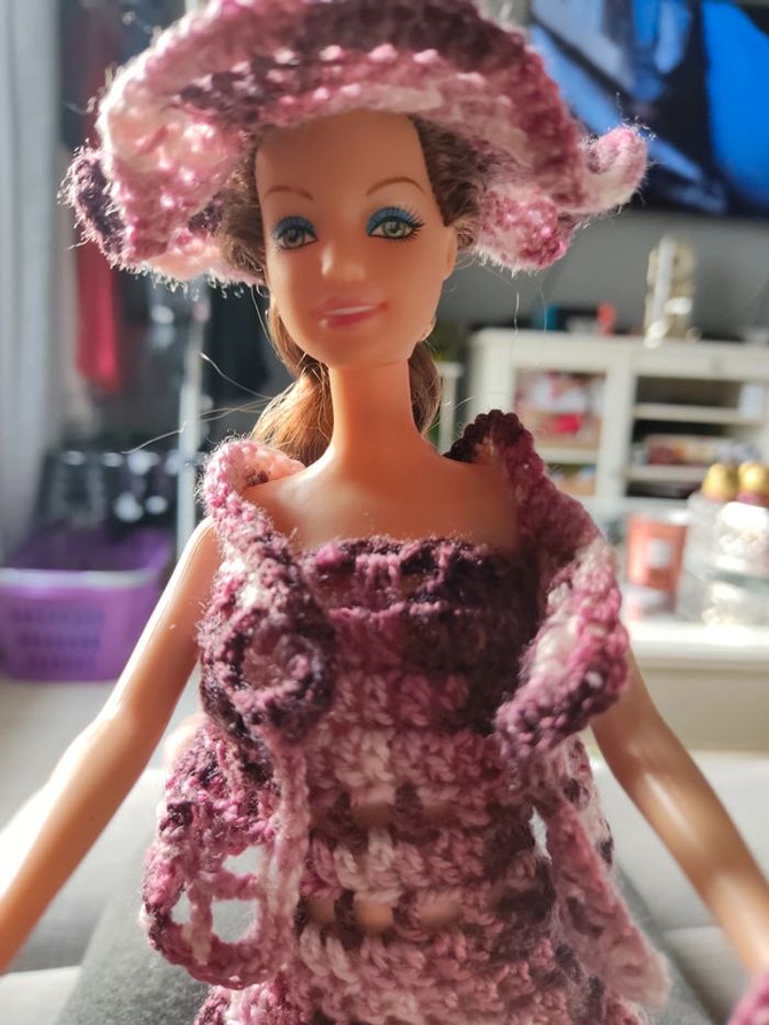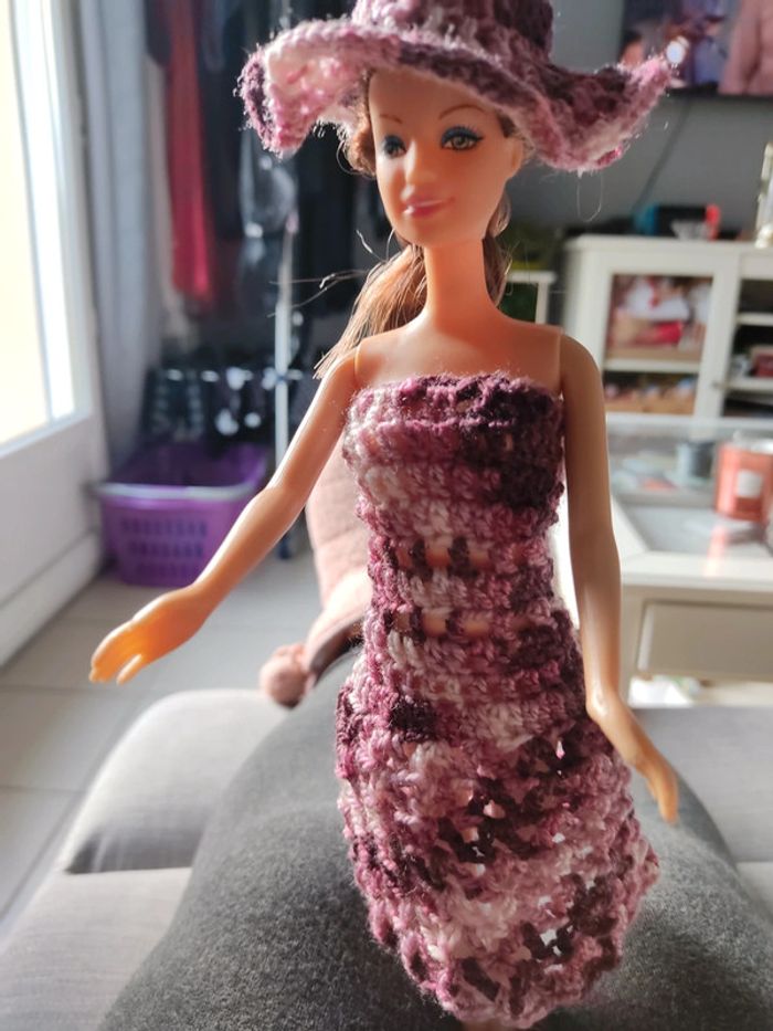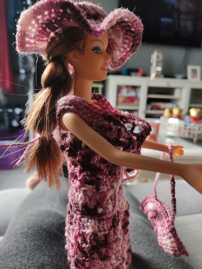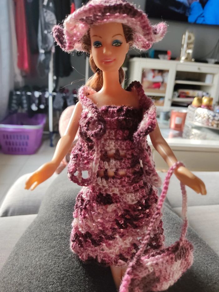 Barbie habillé : robe 👗, veste sans manches, chapeau, sac à main. fait main par moi cette mannequin offerte.