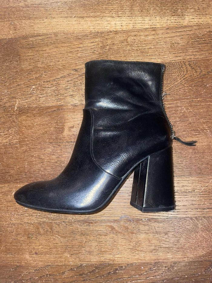 Bottines noires à talon, portés plusieurs fois, des petits fils sortent de la fermeture sur le derrière de la chaussure mais elle sont en assez bon état