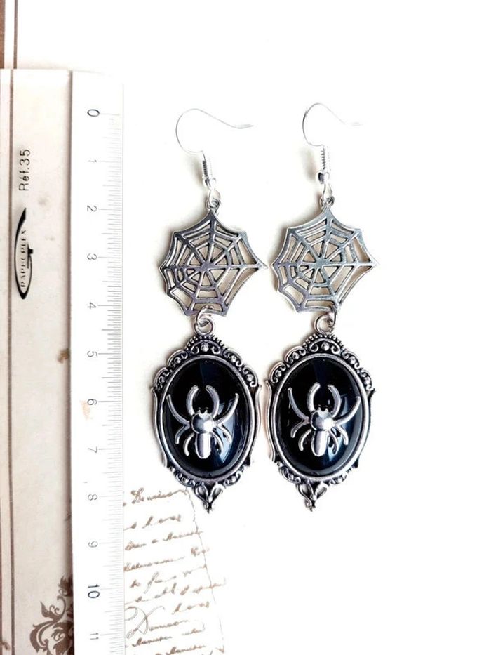 Magnifique paire de boucles d'oreilles pendantes style gothique, couleur argenté et noir avec araignée et sa toile. Neuves. ✨️J'offre -10% pour mes abonnés ig @caelifer_ ✨️ D'autres bijoux sont à découvrir dans mon dressing #bijouxsupernova 🌌 Je suis disponible pour d'autres renseignements / ou demandes de lot. 🌌 Les envois se font soit le jour même ou en 72h maxi ! 🌌 J'accepte les offres raisonnables et les réductions sont activées sur les lots, de plus, un petit cadeau est toujours rajouté au colis. Tags Mode vintage chic hippie 60's 70's 80's 90's BCBG robe chemise pantalon jupe classe bijoux boucles d'oreilles collier pendentif bracelet celtique ethnique bohème ésotérique gothique punk grunge old school geek ancien brocante friperies france Paris parisienne qualité couture tournesol marilyn Monroe astro cosmétiques produits de beauté tissu japon breloque acier inoxydable plaqué or automne hiver printemps été Noël cadeau lune moon child fleurs petit prix réduction lot chouchou scrunchie rétro kawaii japon t-shirt débardeur tunique blouse chemisier camisa camicia vestido vestito pantalones remise lotes jurk Flores brillant coton polyester satin soie jeans elastane sexy élégant pièce rare rome Madrid multicolore noir blanc rouge bleu jaune vert rose orange violet marron pas cher soldes 50% unique look outfit tenue complète conjunto