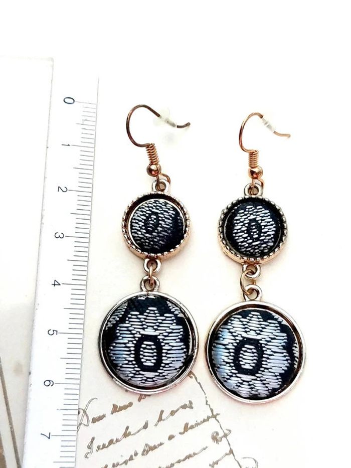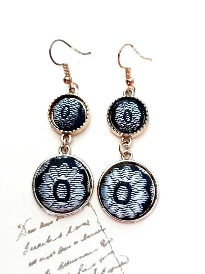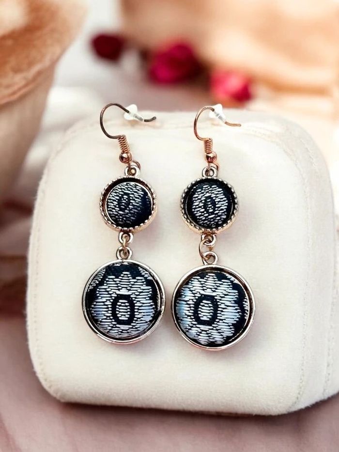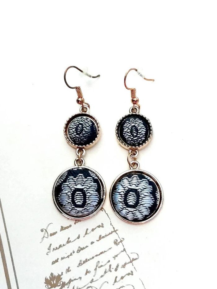Magnifique paire de boucles d'oreilles pendantes style bohème, broderie fleurs blanches/grises sur fond noir. Très bon état. D'autres bijoux sont à découvrir dans mon dressing #bijouxsupernova 🌌 Je suis disponible pour d'autres renseignements / ou demandes de lot. 🌌 Les envois se font soit le jour même ou en 72h maxi ! 🌌 J'accepte les offres raisonnables et les réductions sont activées sur les lots, de plus, un petit cadeau est toujours rajouté au colis. Tags Vintage chic hippie 60's 70's 80's 90's 00's Y2k foulard soie collier bijoux fantaisie signature boucles d'oreilles bague bracelet manchette jonc parure pendentif médaille religieux ancien brocante antiguo antico juwelen bigiotteria joyería antigua antique antik vieux victorien belle époque 1920 art déco art nouveau 1930 années 50 lot gros lot lotto set carré friperie poinçon pièce rare argenté doré bronze perles strass