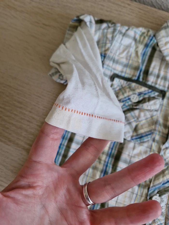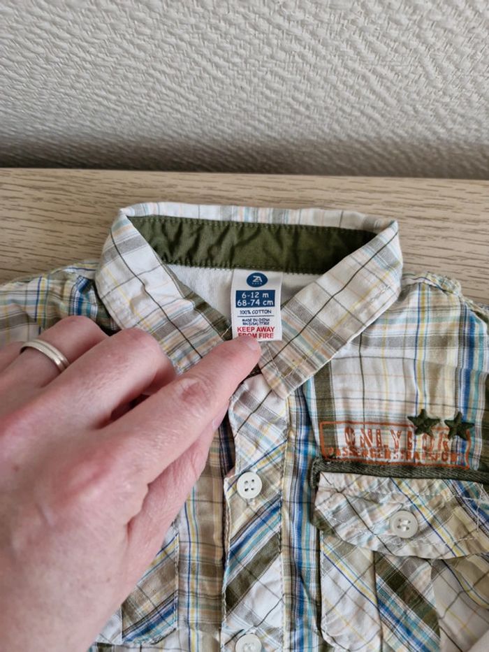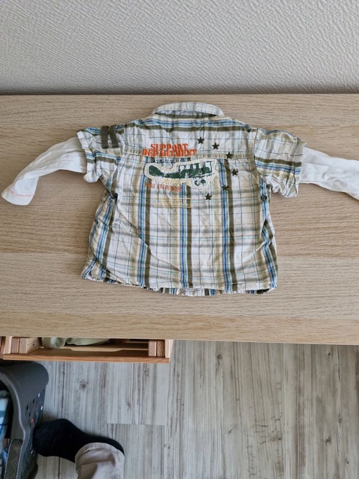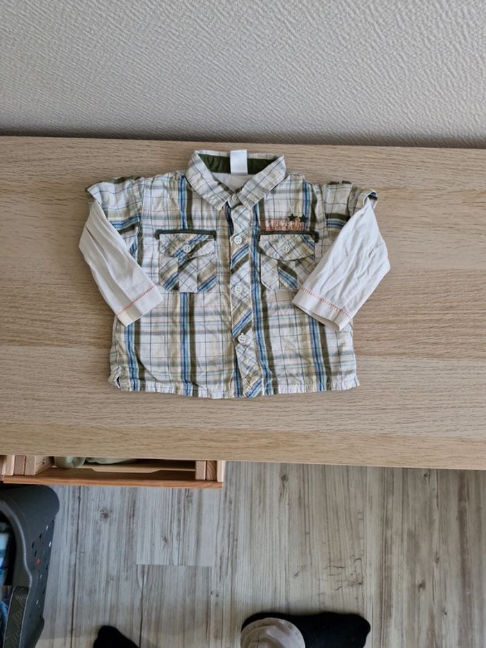 Chemise 6 mois. Une petite tâche à la manche voir photo. Très bon état autrement