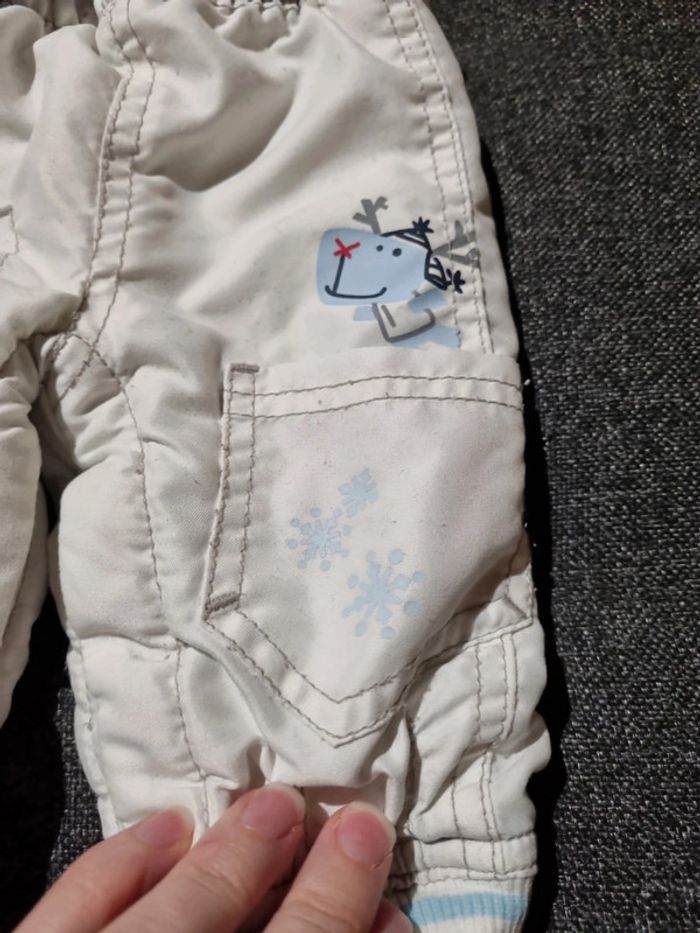 Pantalon chaud pour enfant taille 1 mois en très bon état, uniquement l'étiquette intérieur un peut abîmé voir photo. Taille élastique