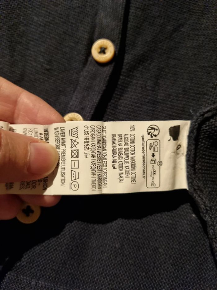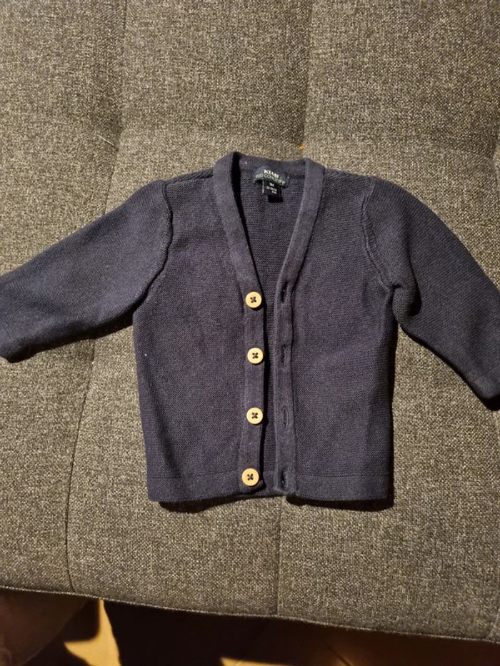 Gilet bébé taille 1 mois couleur bleu marine boutons beige. Comme neuf utilisé 1 fois