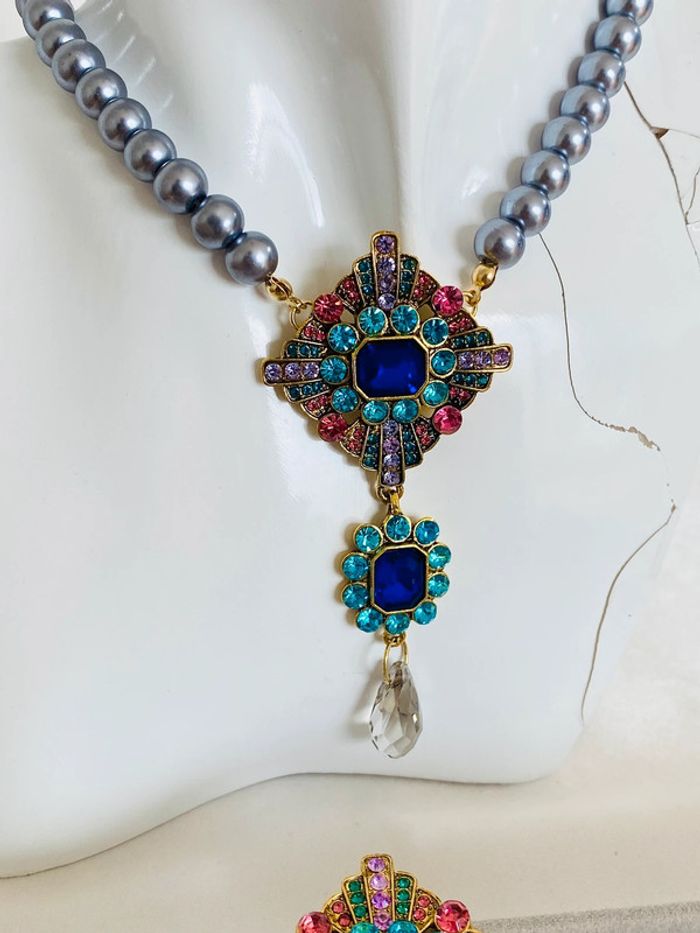 Ensemble collier et boucles d’oreilles à strass - photo numéro 1