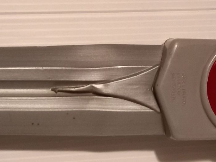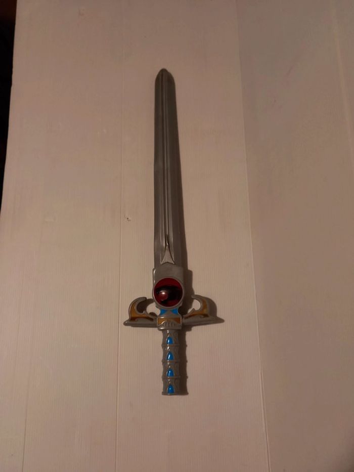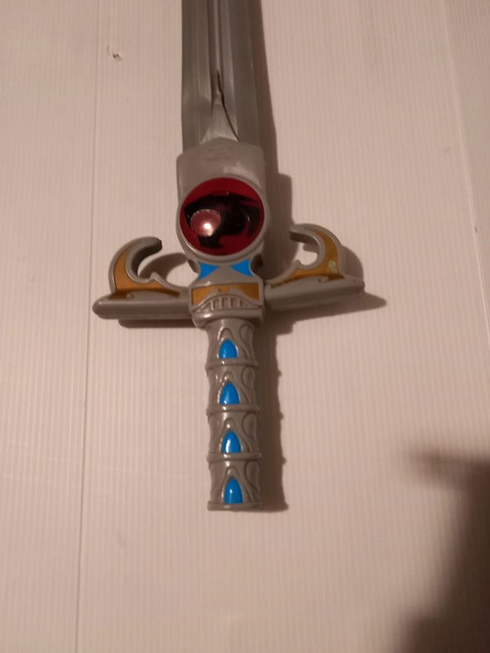 #figurinestephbreizh44 #cosmocatstephbreizh44 Environ 50cm de hauteur. Il manque l'embout permettant d'utiliser la fonction lumineuse, épée vendu comme hs Quelques traces d'usage. Il y a des défauts sur le bas de la lame ainsi que sur le bout. Livraison dans un carton solide avec rembourrage. Interdit aux enfants de moins de 3ans présence de petites pièces risques d'étouffement. Retour possible sous 14jours.