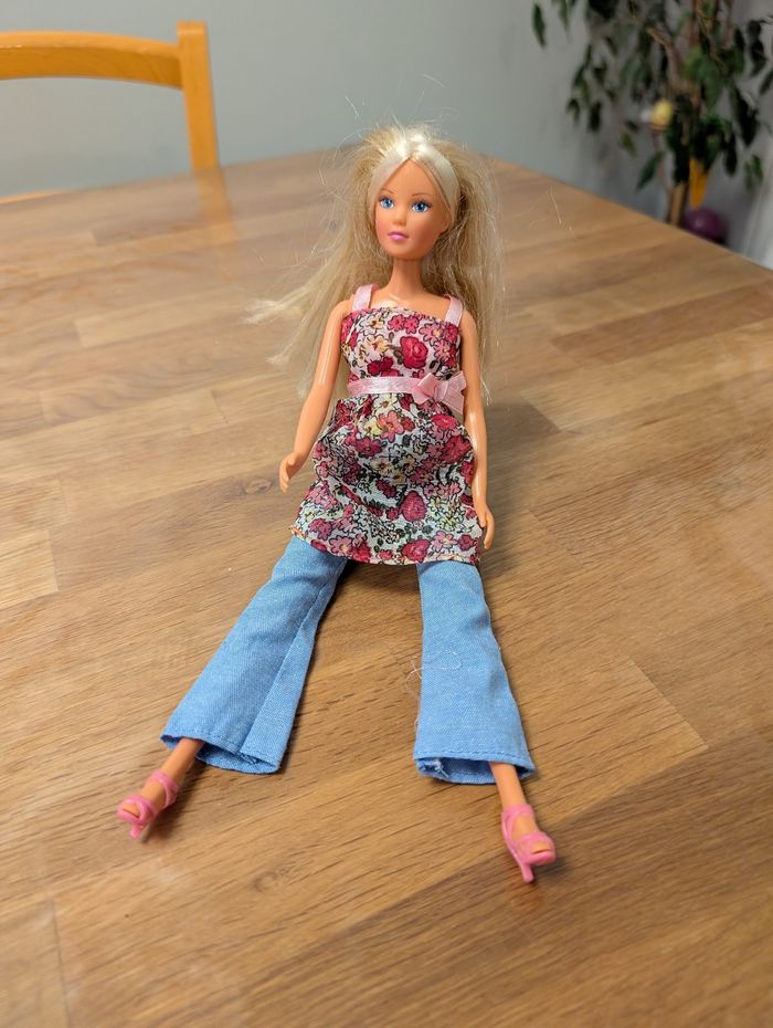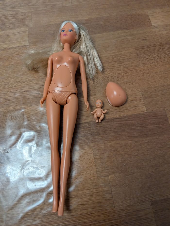 Poupée 30 cm enceinte avec son nouveau né Très bon état