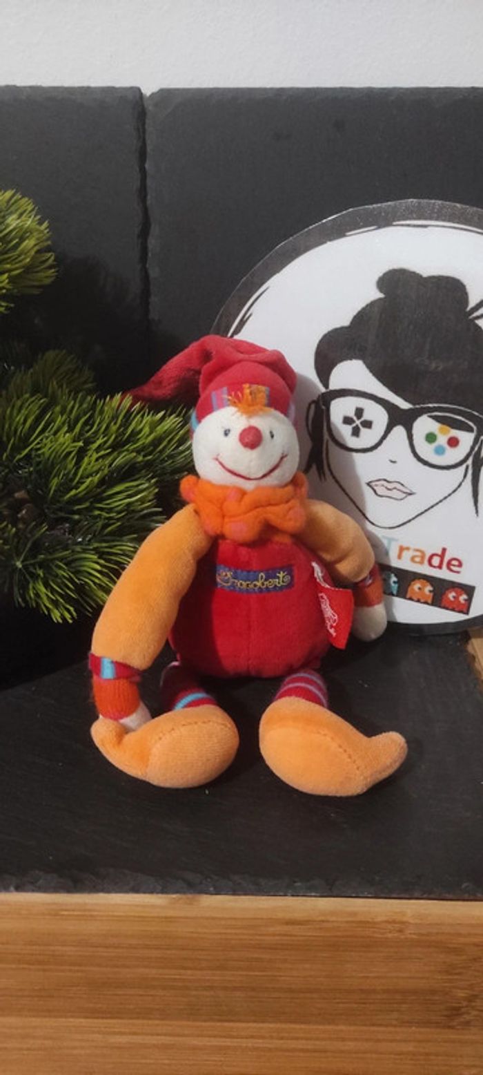 moulin roty Doudou peluche Capucin Dragobert rouge clown bonnet orange rayé rayure - photo numéro 1