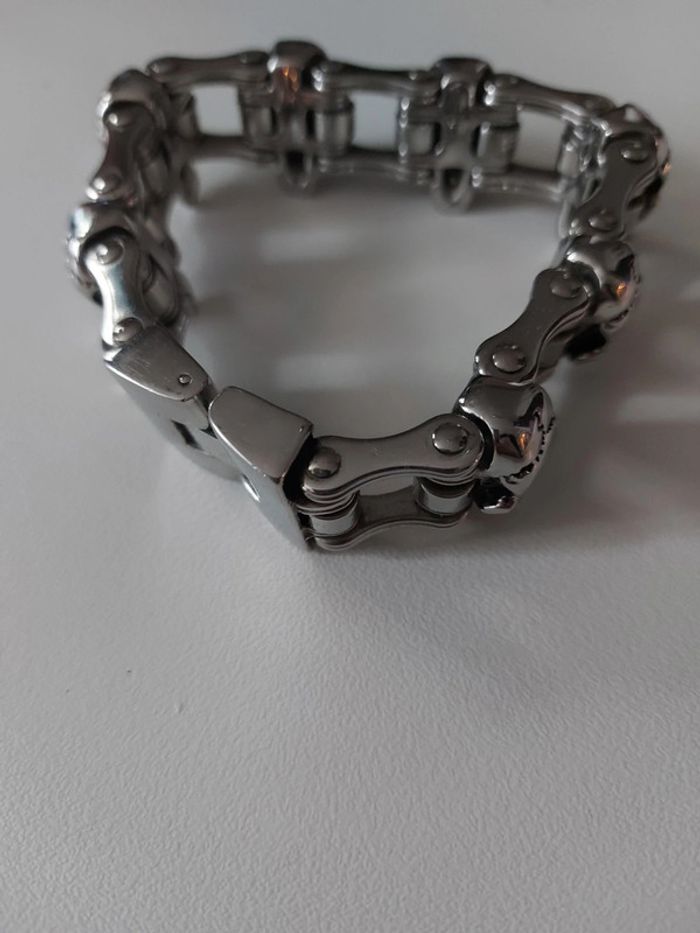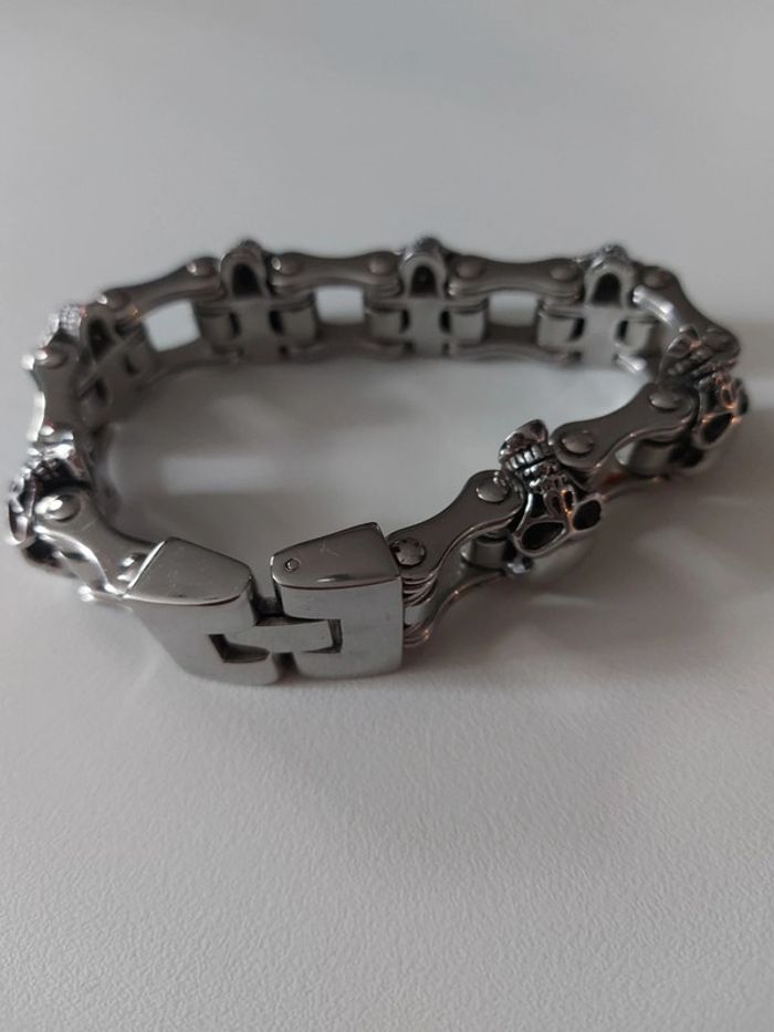 Bracelet gourmette tête de mort en acier très bonne qualité et état