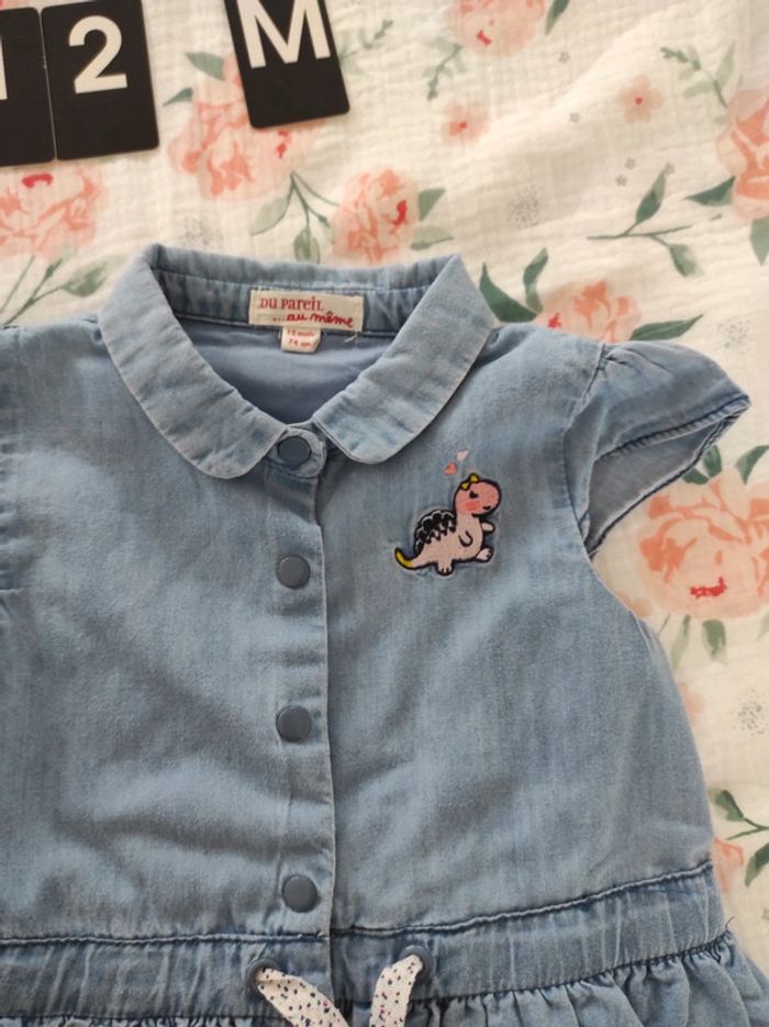 Robe jeans dinosaures Dpam 12 mois - photo numéro 4