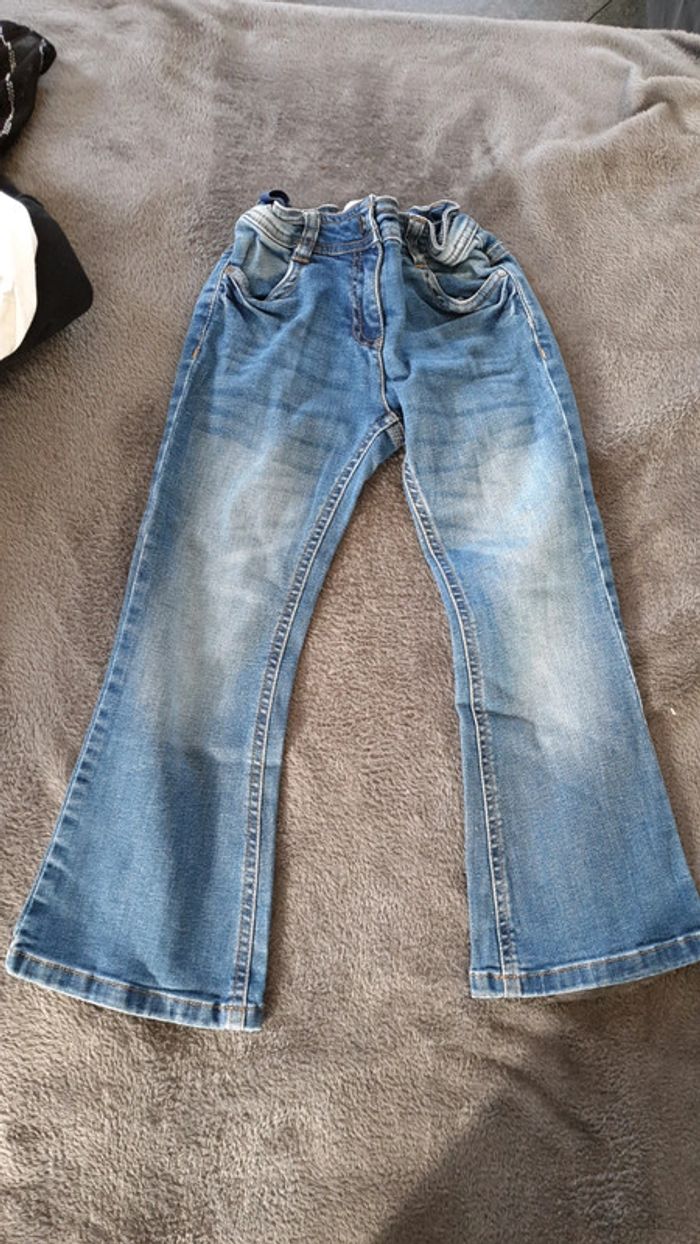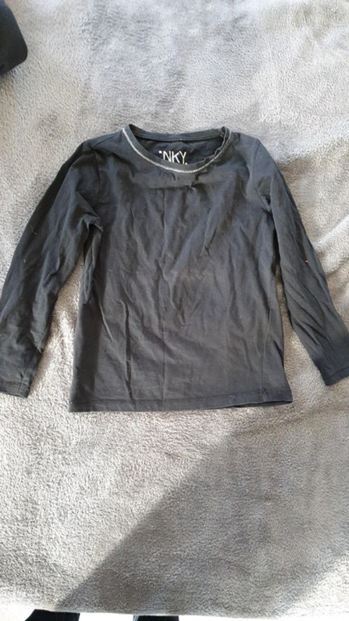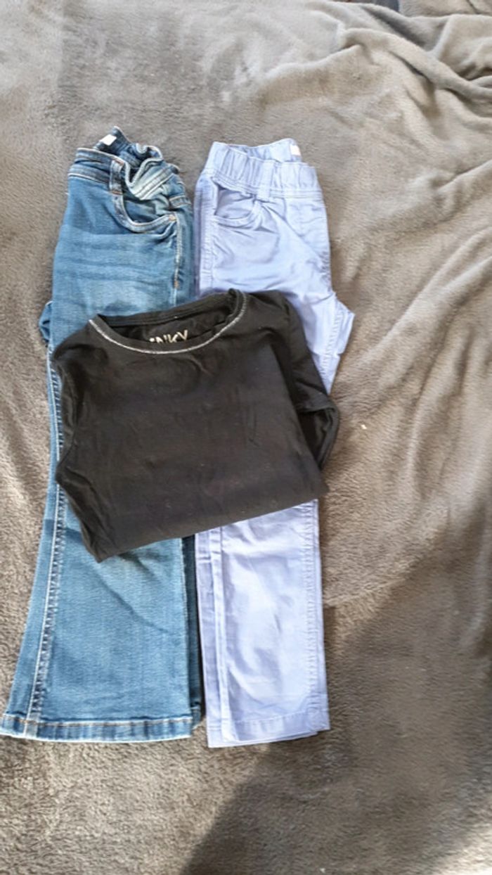 Un jeans pattes d elephant 5ans gemo Un pantalon violet 5 ans gemo Un pull noir nky 5 ans