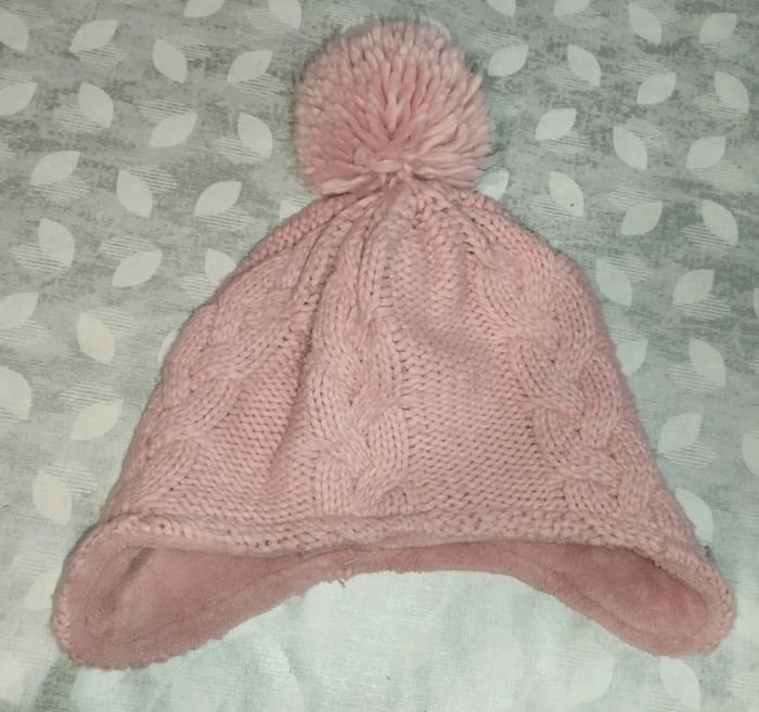 Bonnet rose avec pompon. Comme neuf casi pas porté. Intérieur doux, style polaire. 6/8 ans