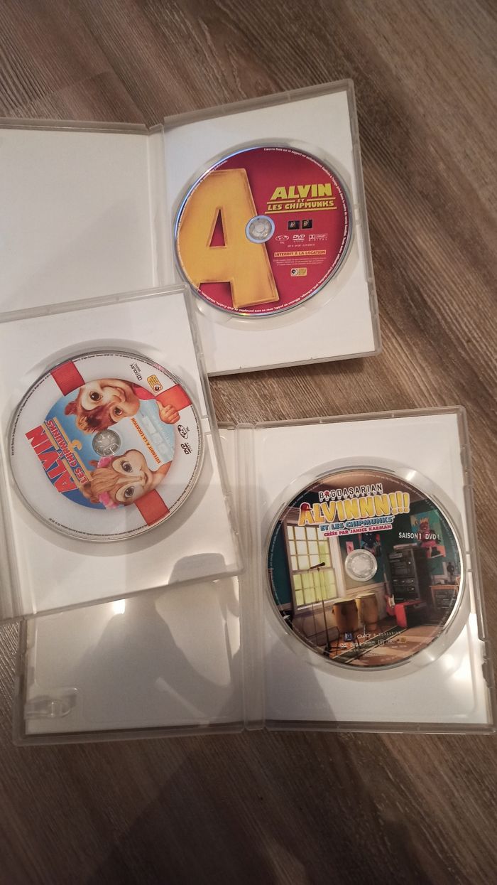 DVD pour jeunes enfants Lot de 3 films Alvin et les chipmunks Boites globalement en TBE CD non vérifiés