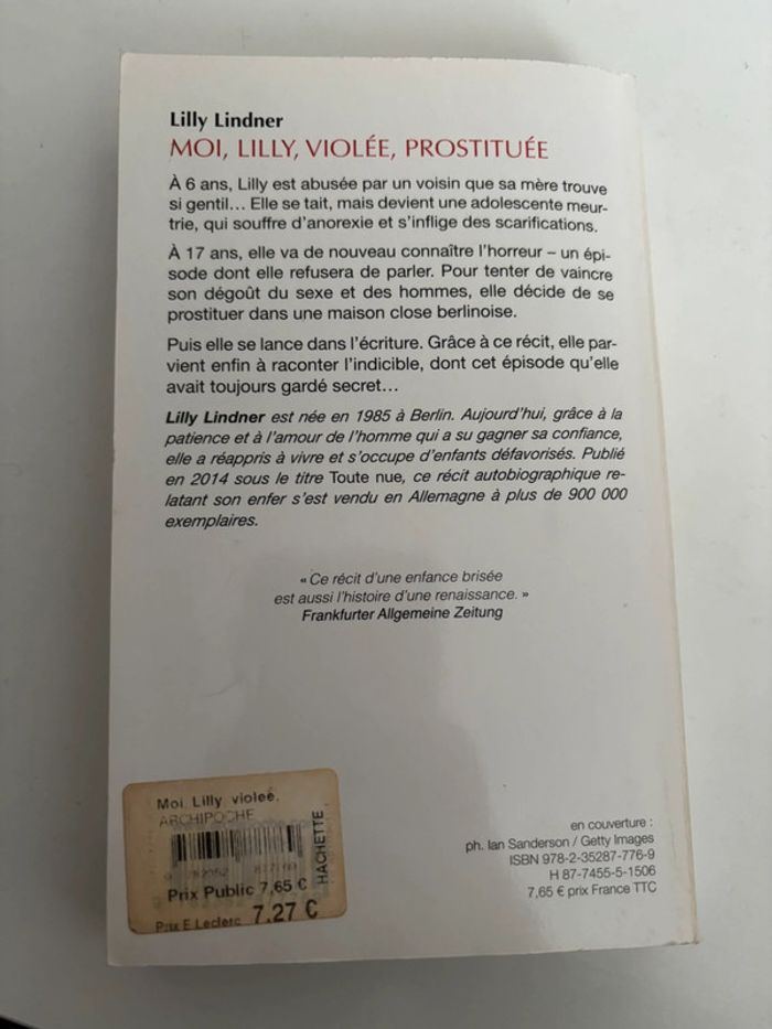 Livre « moi, Lilly, violée, prostituée »