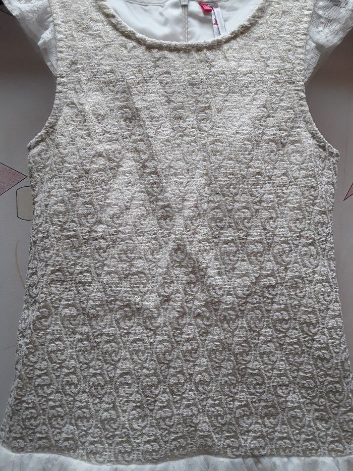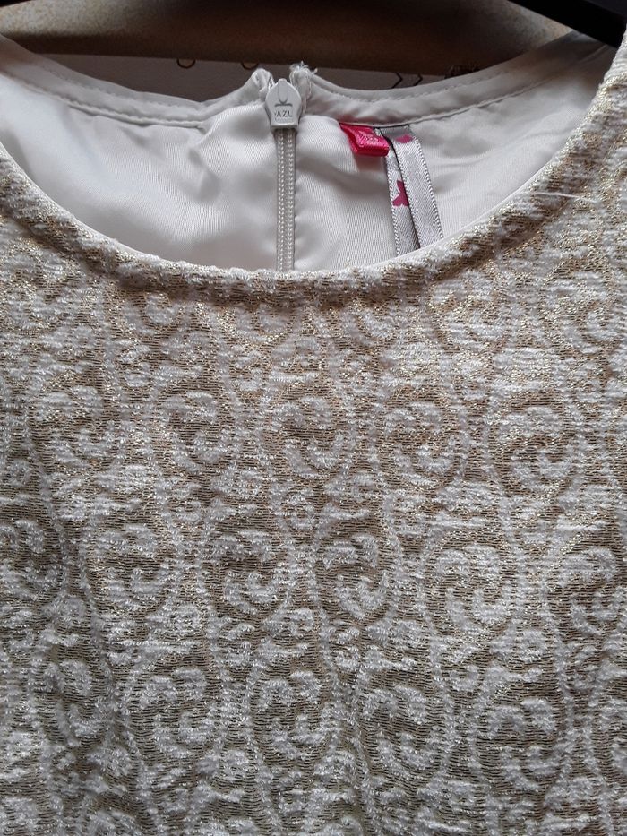Robe 8ans Entièrement doublée Manches courtes en tulle Bas volante en voile Motif dore Tres belle qualite
