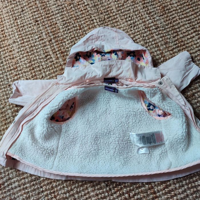 Très beau manteau avec doublure polaire amovible. La capuche s'enlève également. 6 mois sergent major.